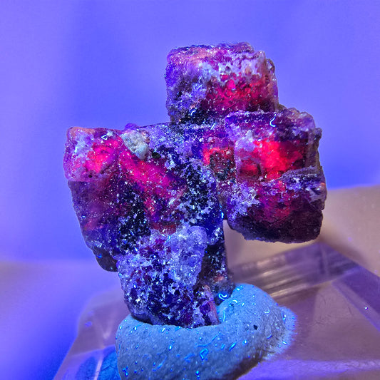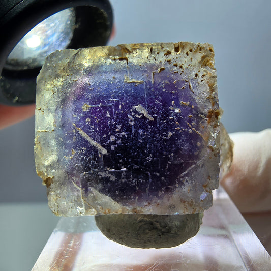 Seltene UV Phantom Fluorit Würfel Stufe, lila Okorusu, Namibia 24*19*11mm