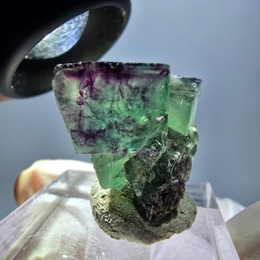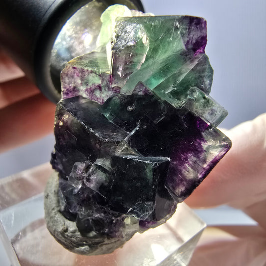 Seltene Phantom Fluorit Würfel Stufe, grün lila Okorusu, Namibia 20*21*17mm