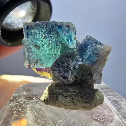 Phantom Fluorit Würfel Stufe, grün lila 11:11 Angel Pocket, Namibia 41*29*16mm