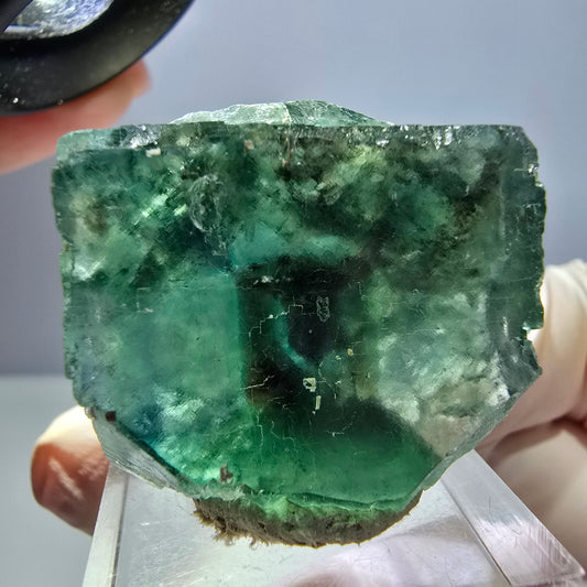 Aufgrund seiner relativen Weichheit ist es wichtig, Fluorit mit Vorsicht zu behandeln. Vermeiden Sie den Kontakt mit harten Oberflächen und bewahren Sie Fluorit-Schmuck separat auf, um Kratzer zu vermeiden. Reinigen Sie das Mineral mit einem weichen Tuch und lauwarmem Wasser, und vermeiden Sie aggressive Chemikalien, die die Oberfläche beschädigen könnten.