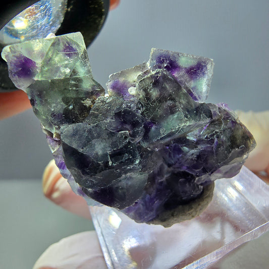 Seltene Phantom Fluorit Würfel Stufe, grün lila Okorusu, Namibia 25*21*15mm