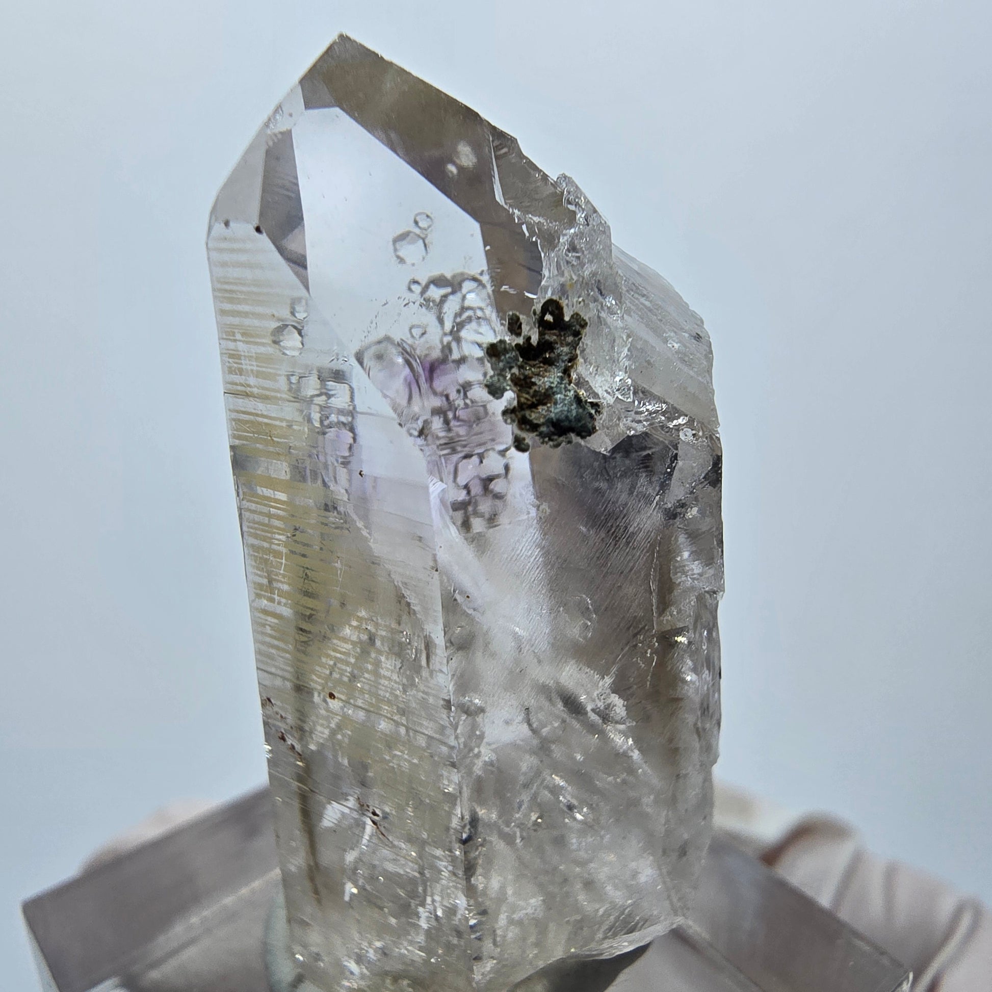 A highlight is the visible enhydro inclusion with a movable air bubble, which gives the crystal a very special radiance. It measures 37 x 18 x 18 mm and weighs 15 g.