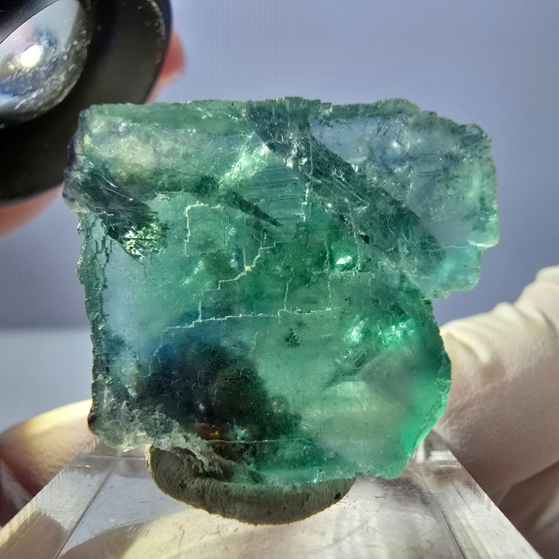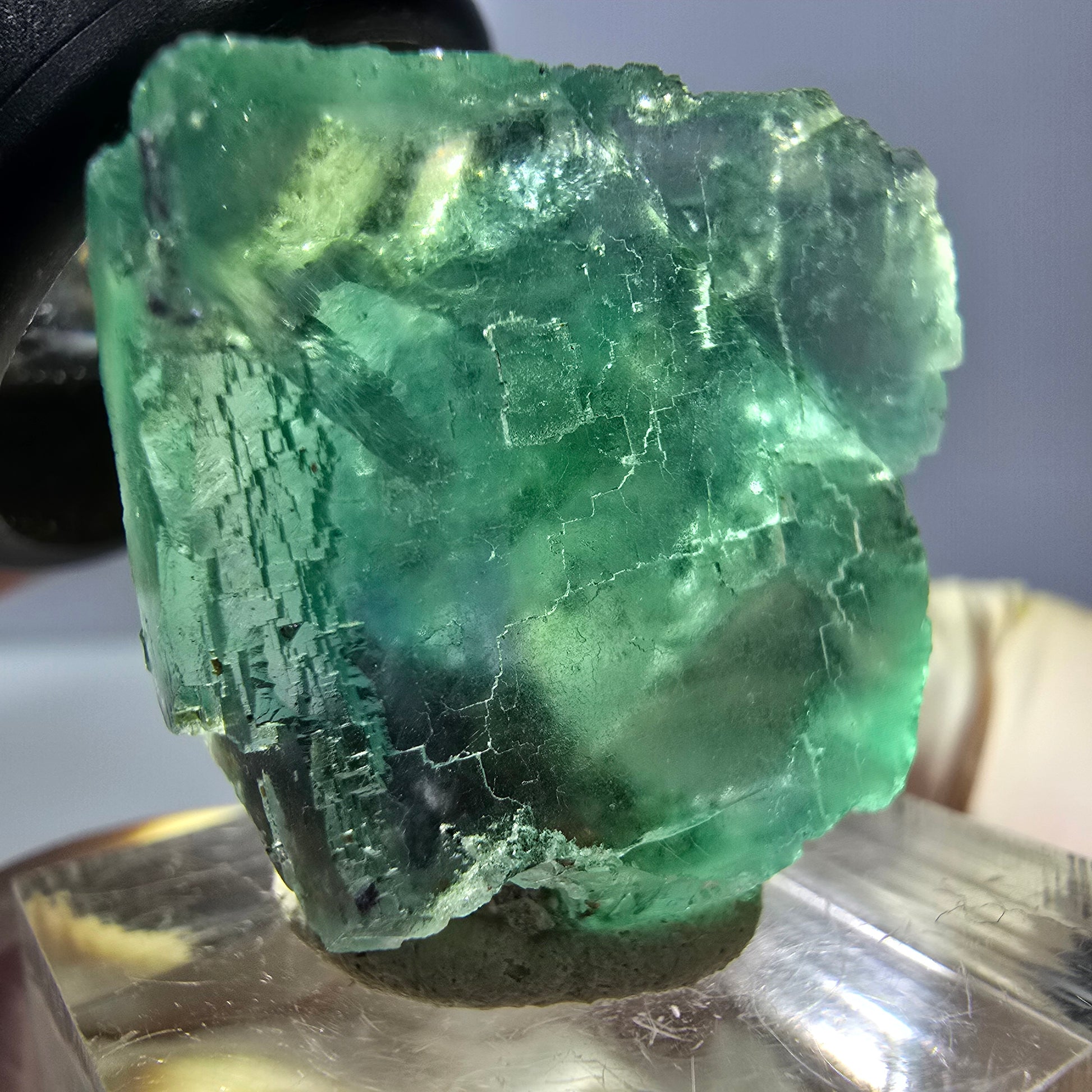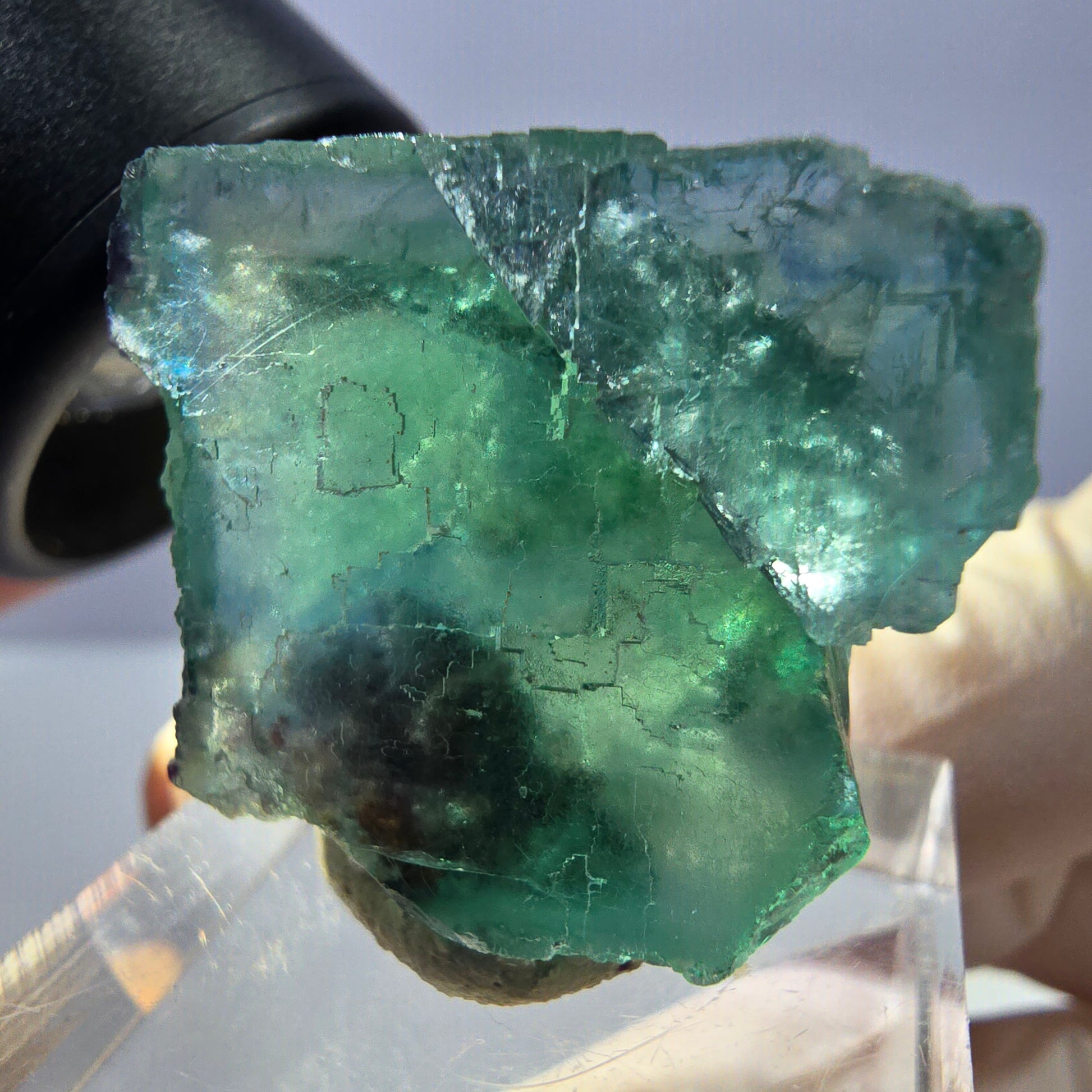 Clear Phantom Fluorite Cube Parquetted - Green