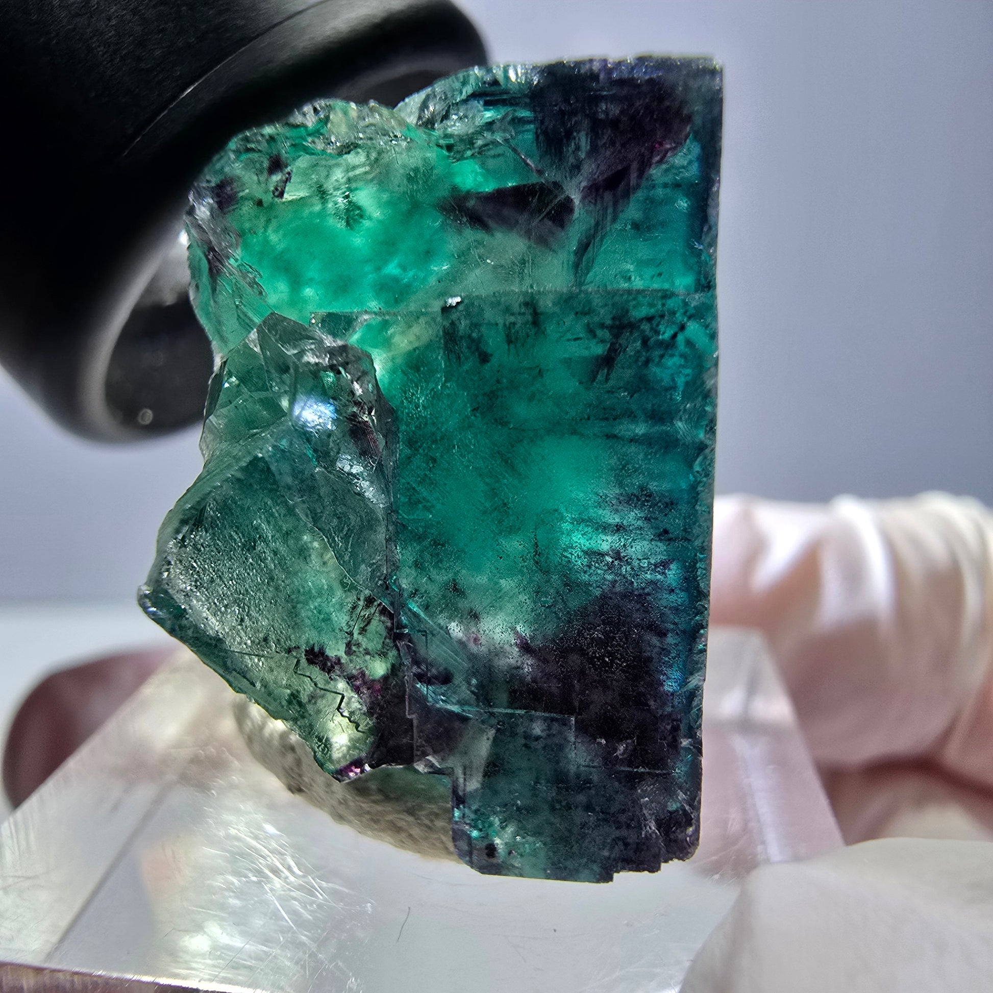 Discover our exceptional Phantom Fluorite Cube, which captivates with its striking colors and unique cubic crystal shape. Each cube is meticulously crafted, featuring a parquetry surface that vividly showcases the mesmerizing purple and green phantoms within. This beautiful crystal is perfect for decoration or as a collectible.