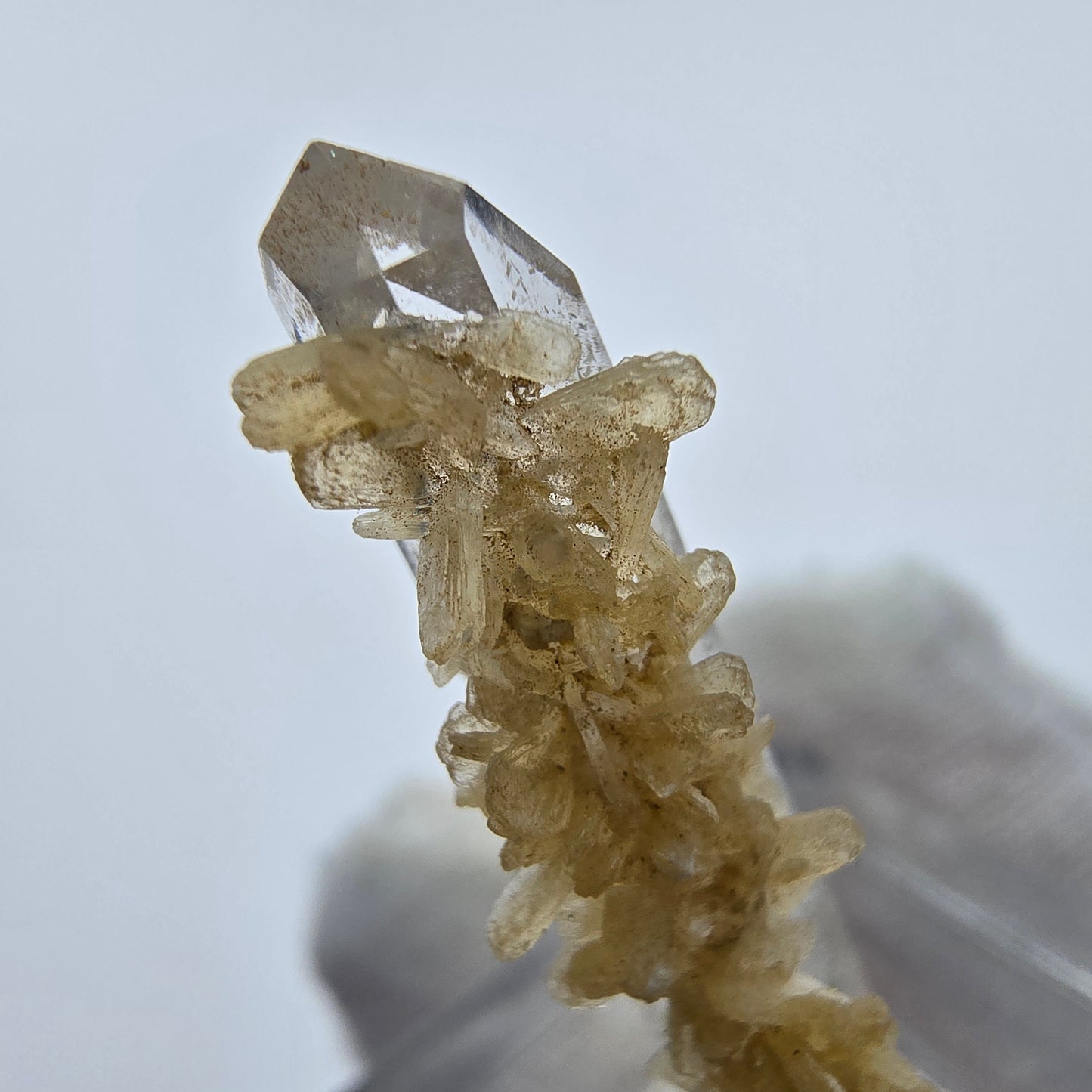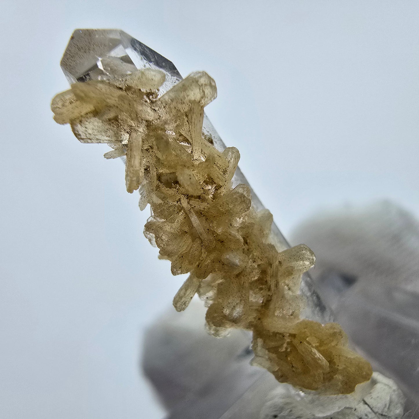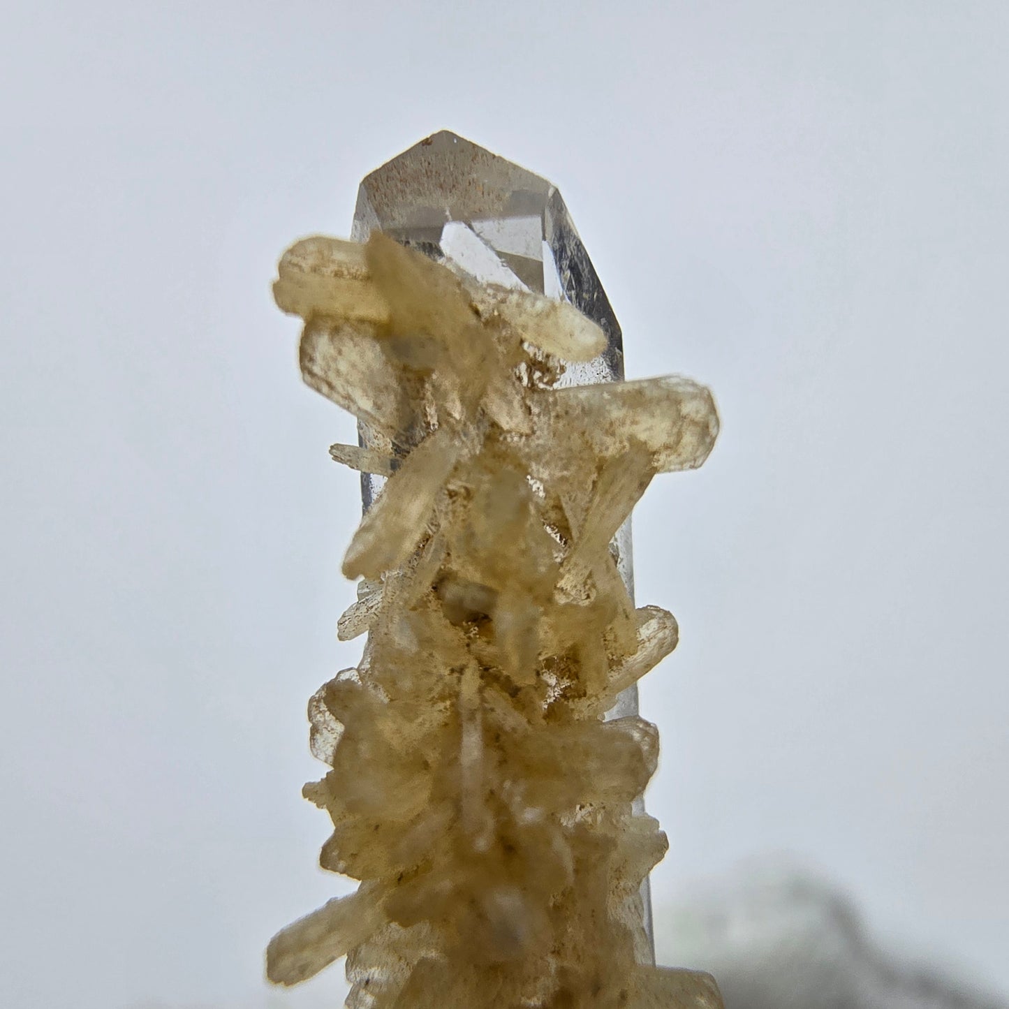 Cristal de quartz fumé Harlequin Phantom avec stilbite