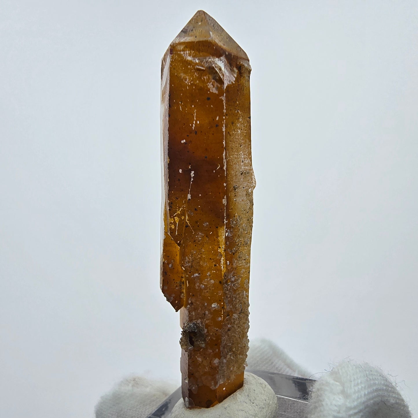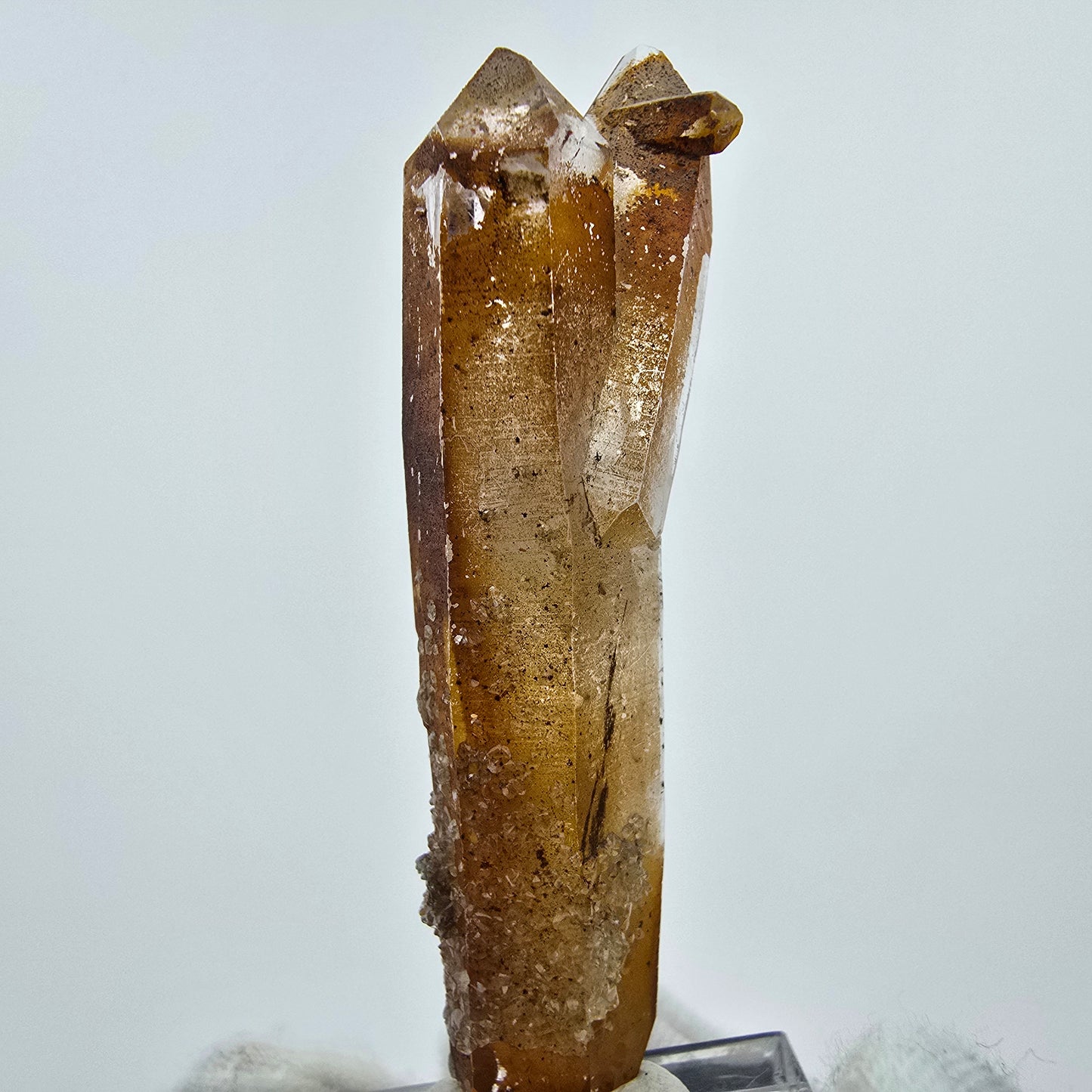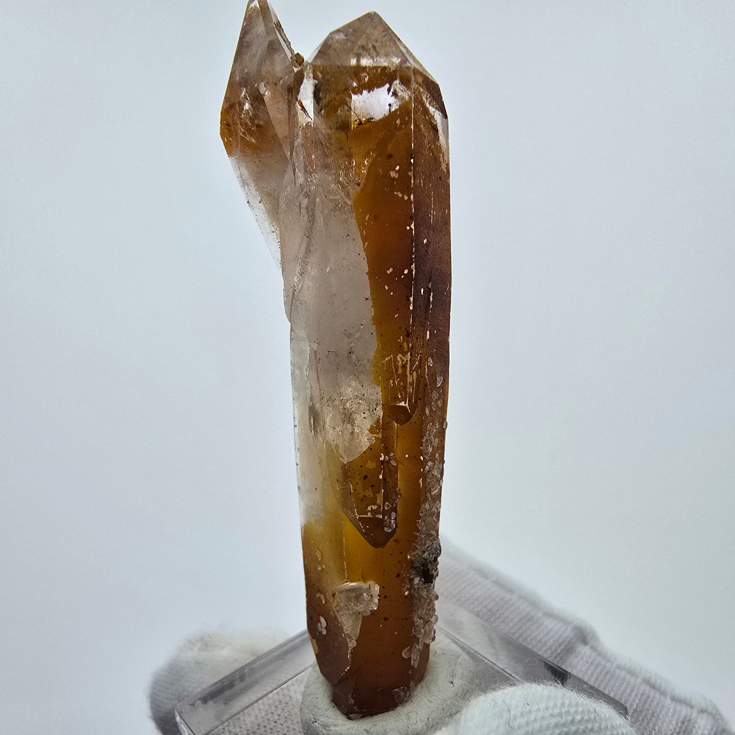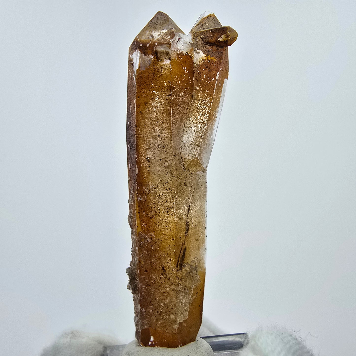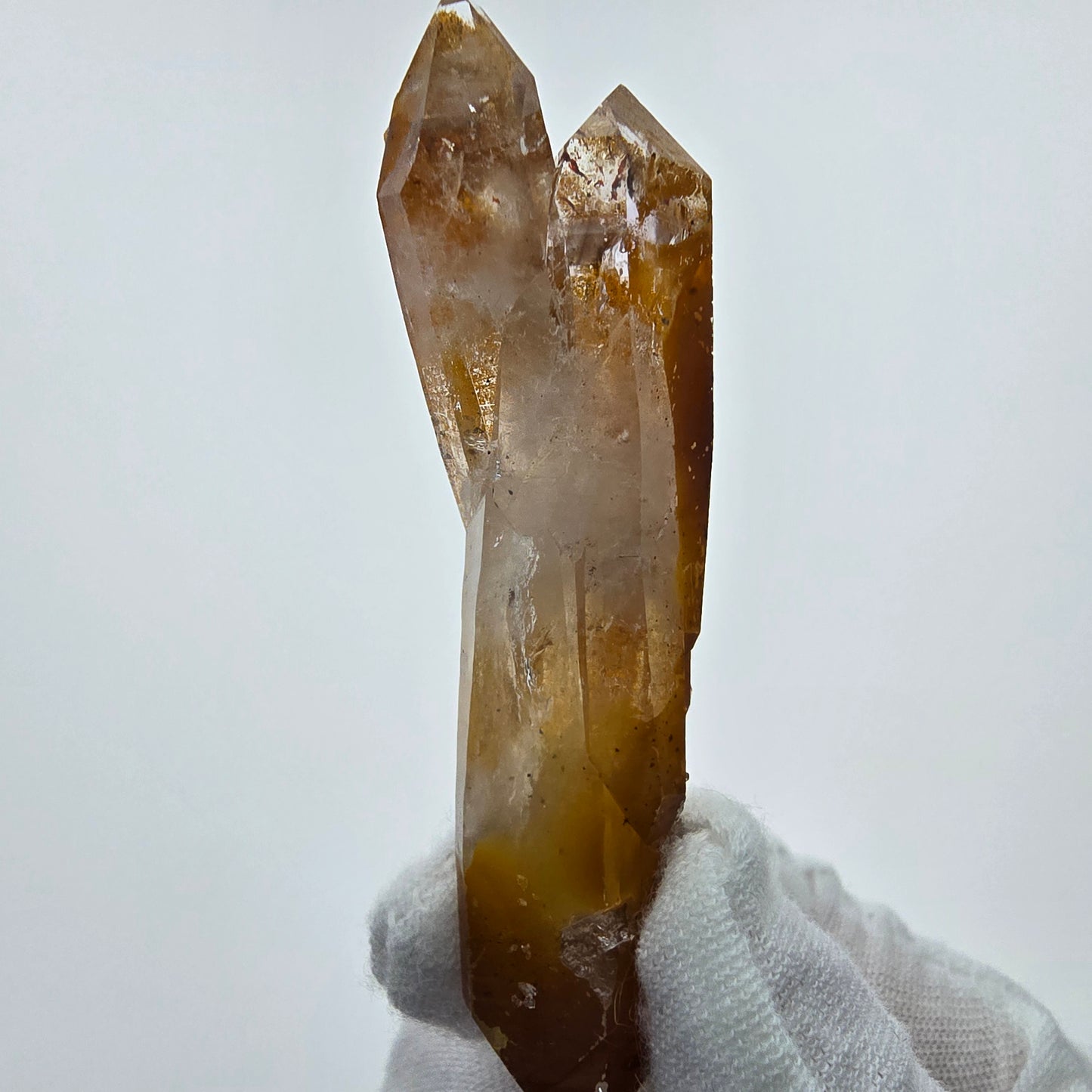 Découvrez ce quartz fumé Harlequin rare et fascinant, qui impressionne par ses impressionnantes inclusions d'hématite rouge et ses fantômes bruns esthétiquement agréables à l'intérieur. Cette pointe de cristal transparente présente une forme de cristal unique à double terminaison qui comporte des pointes de cristal des deux côtés.