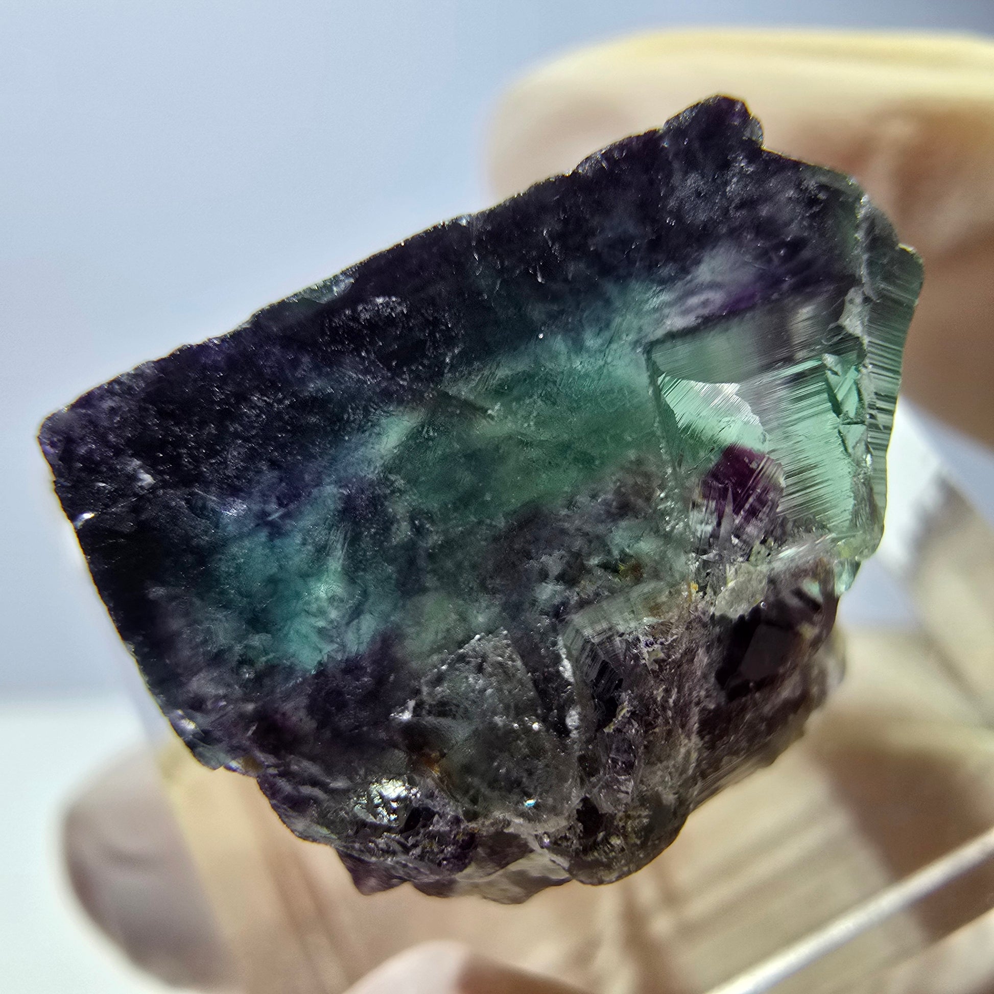Cube de fluorite fantôme transparente, vert violet, Okorusu, Namibie, 18 x 16 x 15 mm