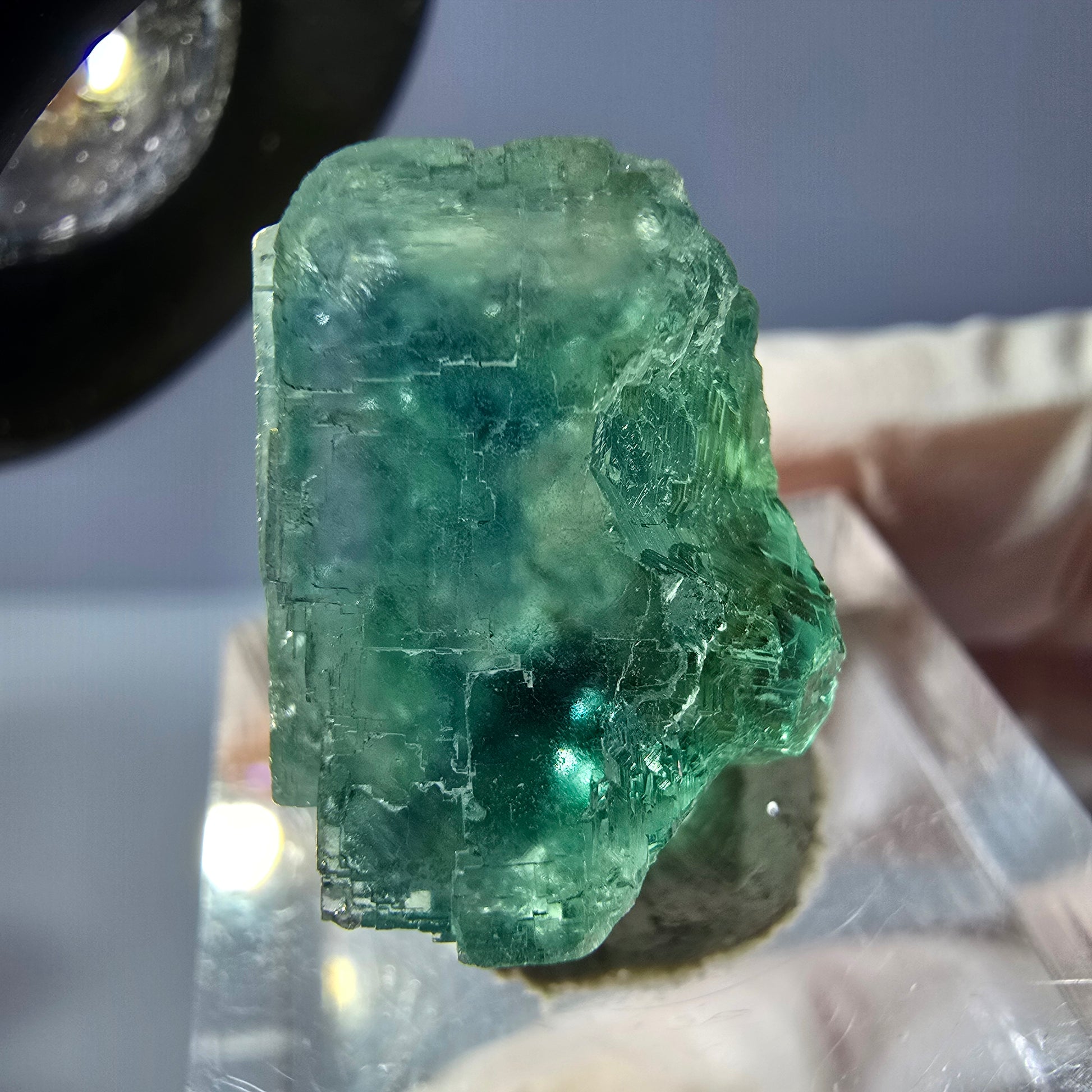 Découvrez notre cristal de Fluorite Fantôme Cube, clair, vert et transparent, captivant par sa forme cubique et les fantômes envoûtants qu'il recèle. Chaque cube est une œuvre d'art unique, parfaite pour la décoration ou comme pierre de collection énergétique. Sa surface effet parquet lui confère un attrait visuel supplémentaire, tandis que ses tons verts intenses apportent une touche d'harmonie.