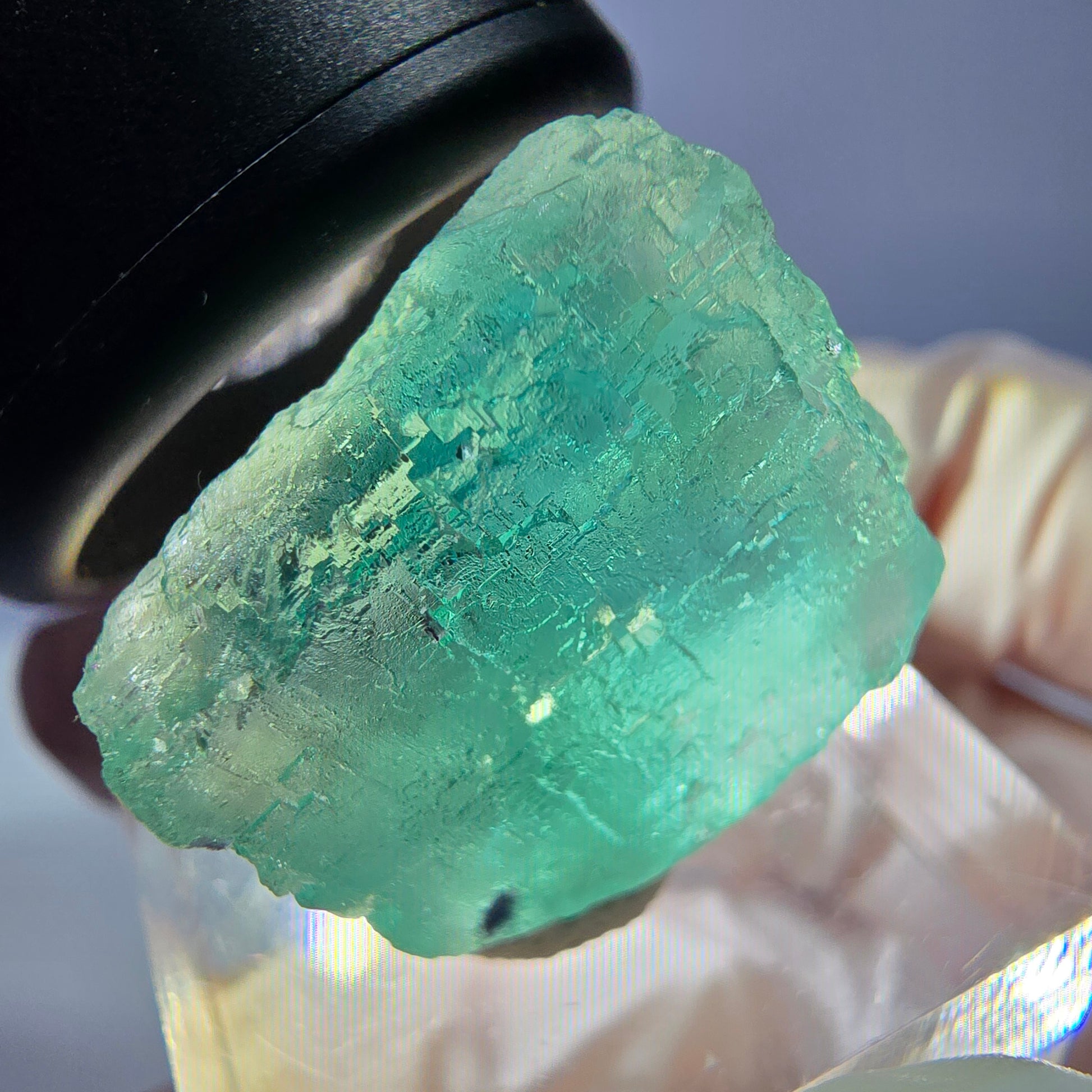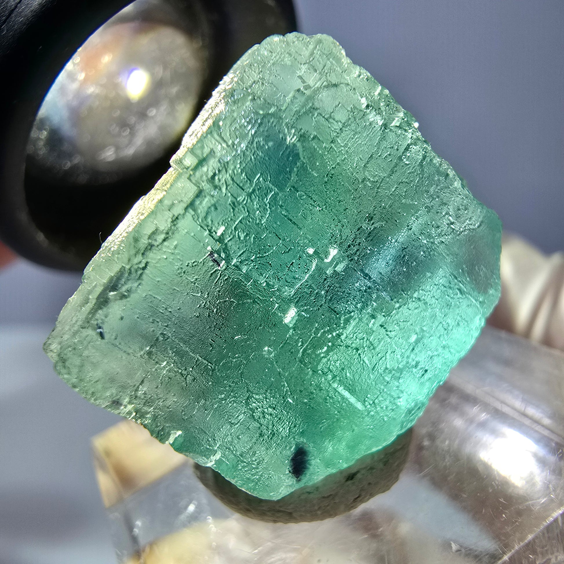 Ce cube de fluorite fantôme vert clair et transparent est un superbe objet de collection, captivant par sa forme cubique et sa surface parquetée. Les magnifiques fantômes visibles à l'intérieur du cristal captent élégamment la lumière et ajoutent une profondeur fascinante à l'objet. Mesurant seulement 20 x 18 x 17 mm et pesant 13 g, ce cristal est parfait pour votre collection de minéraux ou comme élément décoratif.