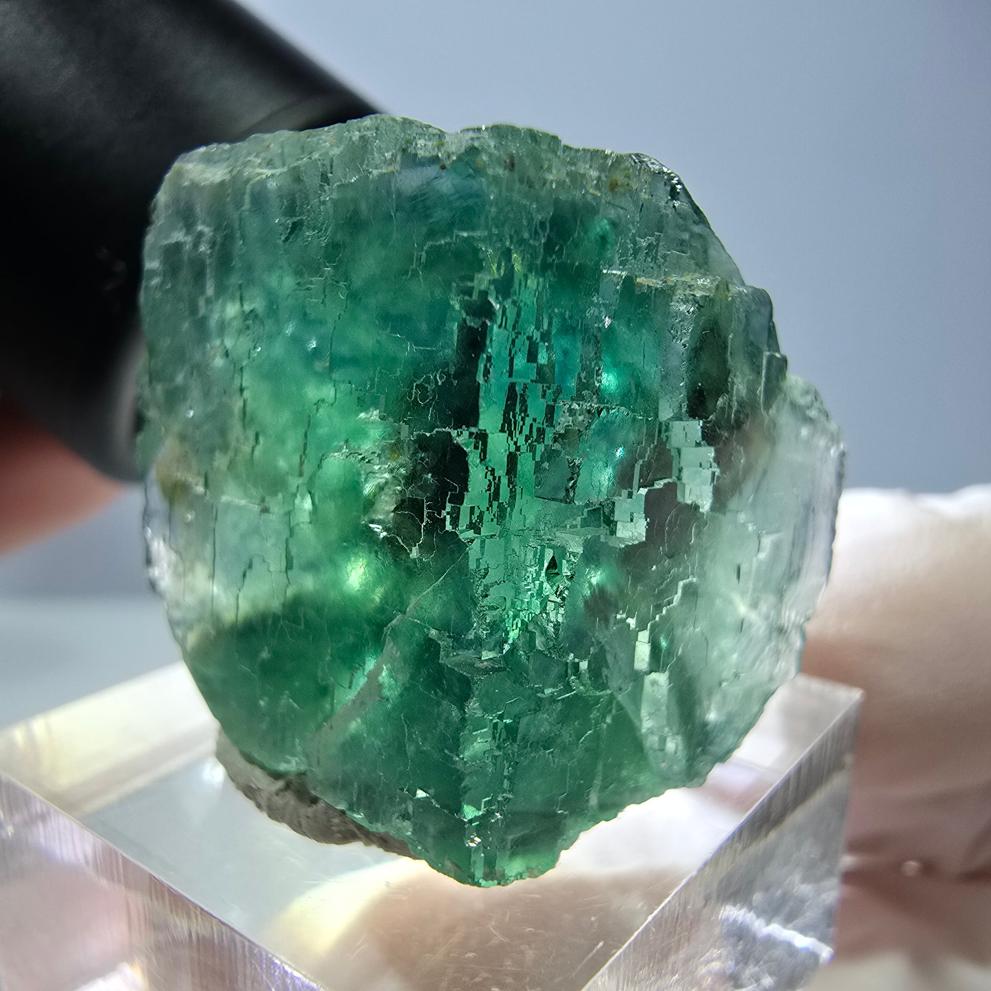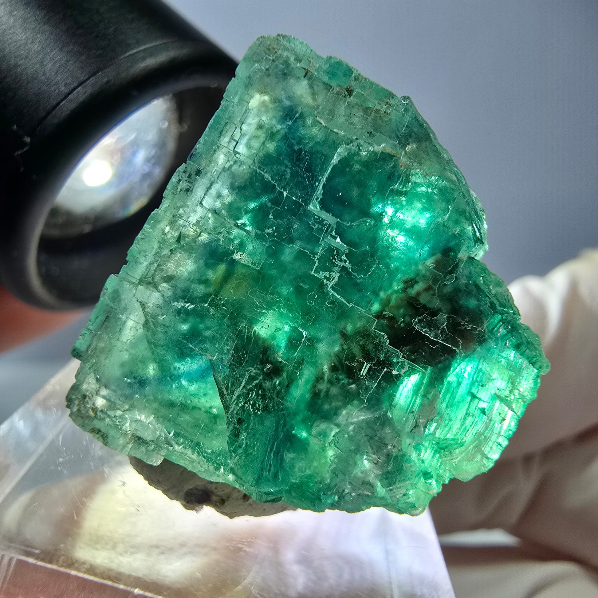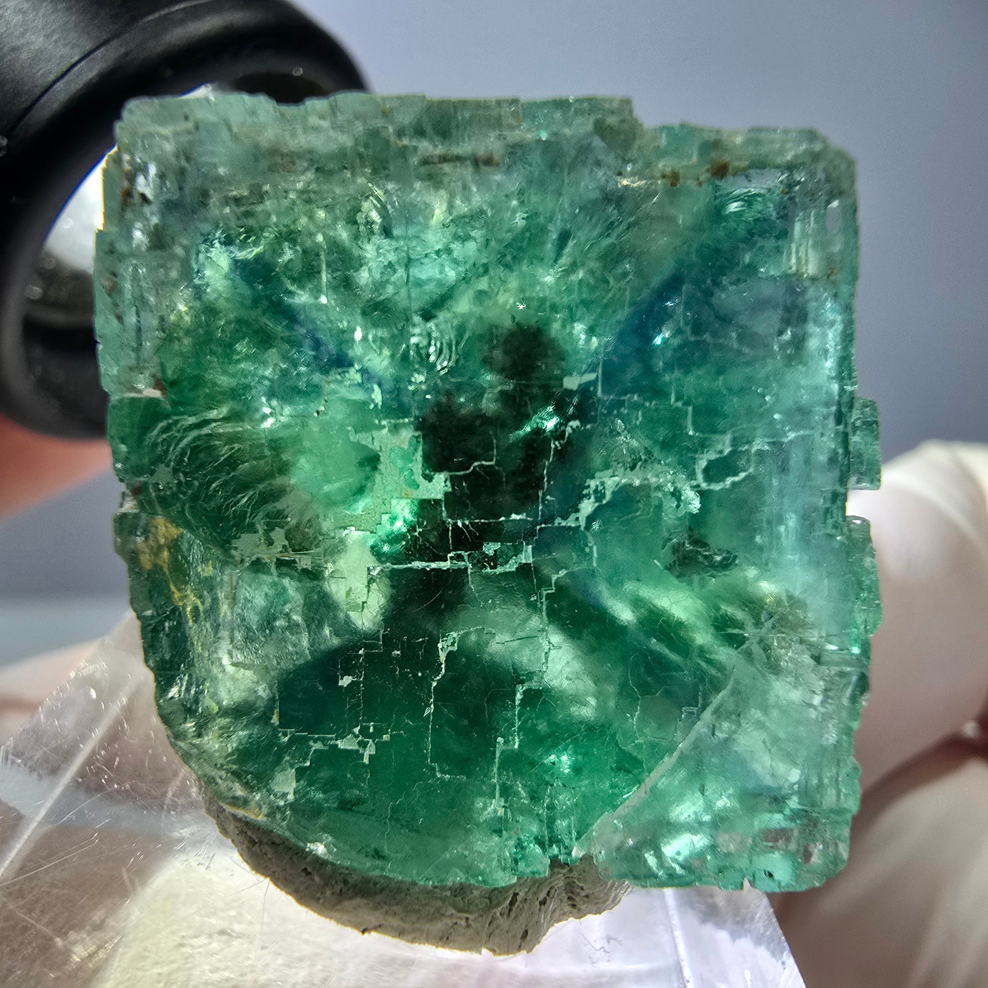 Cube de fluorite fantôme transparente parquetée, vert Okorusu, Namibie 23*23*22mm