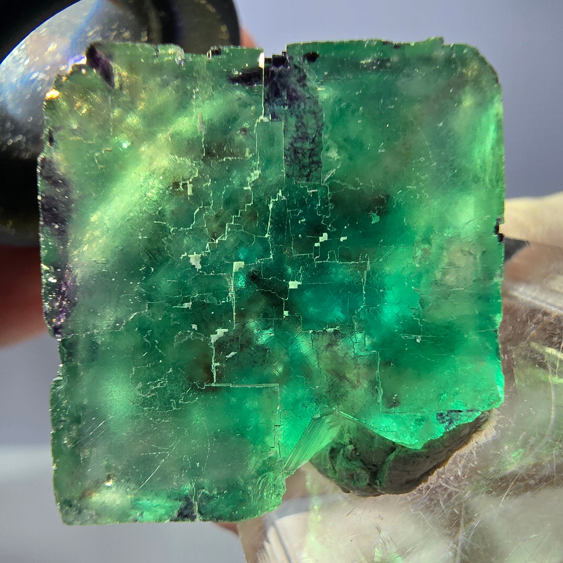 Cube de fluorite fantôme transparent – Parqueté, vert