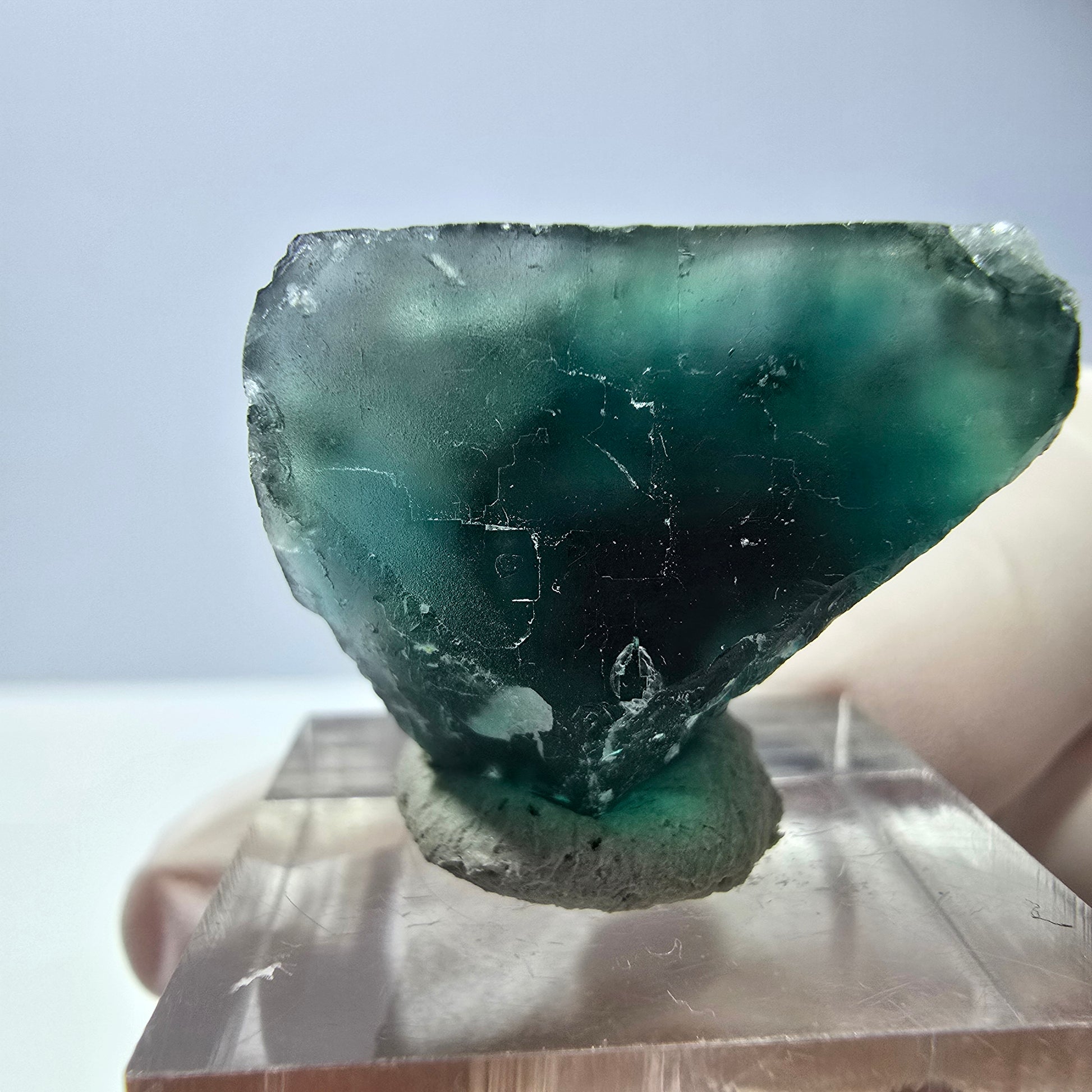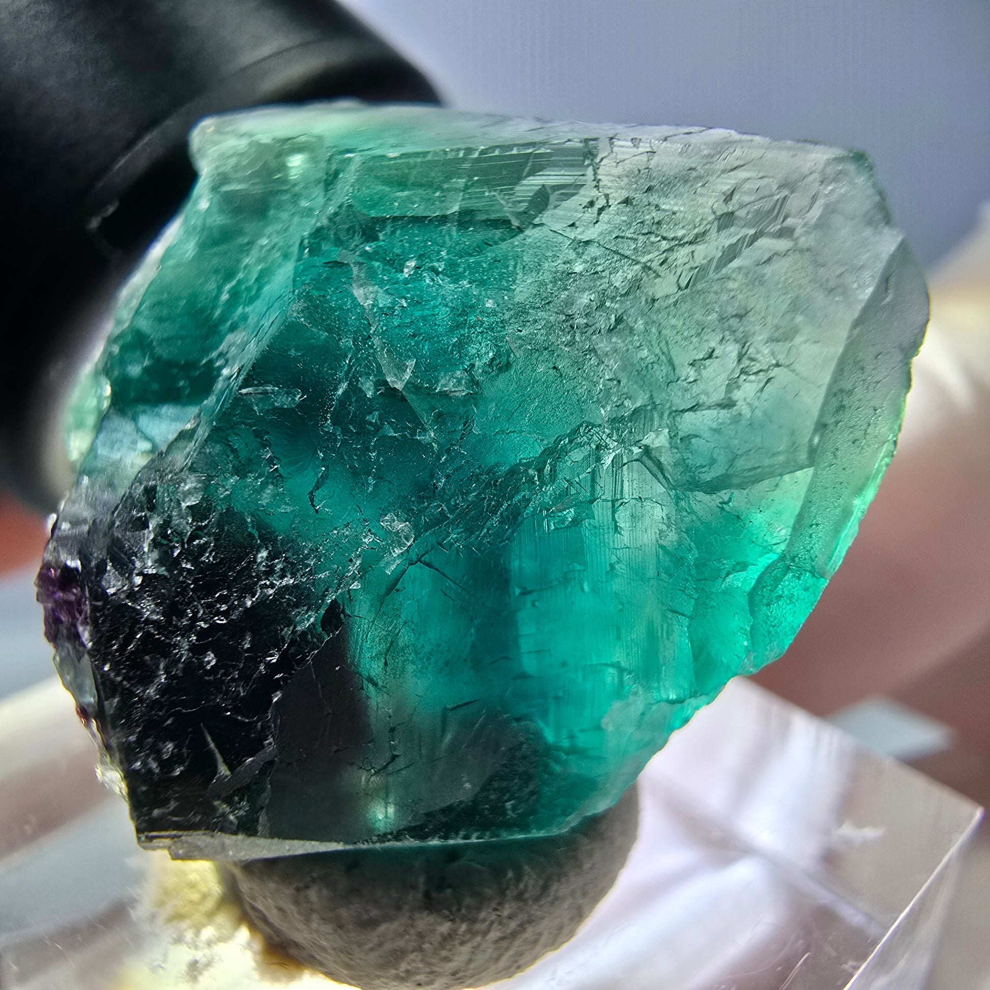 Découvrez le fascinant cube de fluorite fantôme transparent d'un vert éclatant ! Ce cristal exceptionnel se présente sous une forme cubique avec une surface parquetée exquise. Les magnifiques fantômes à l'intérieur du cristal en font une pièce de collection unique.