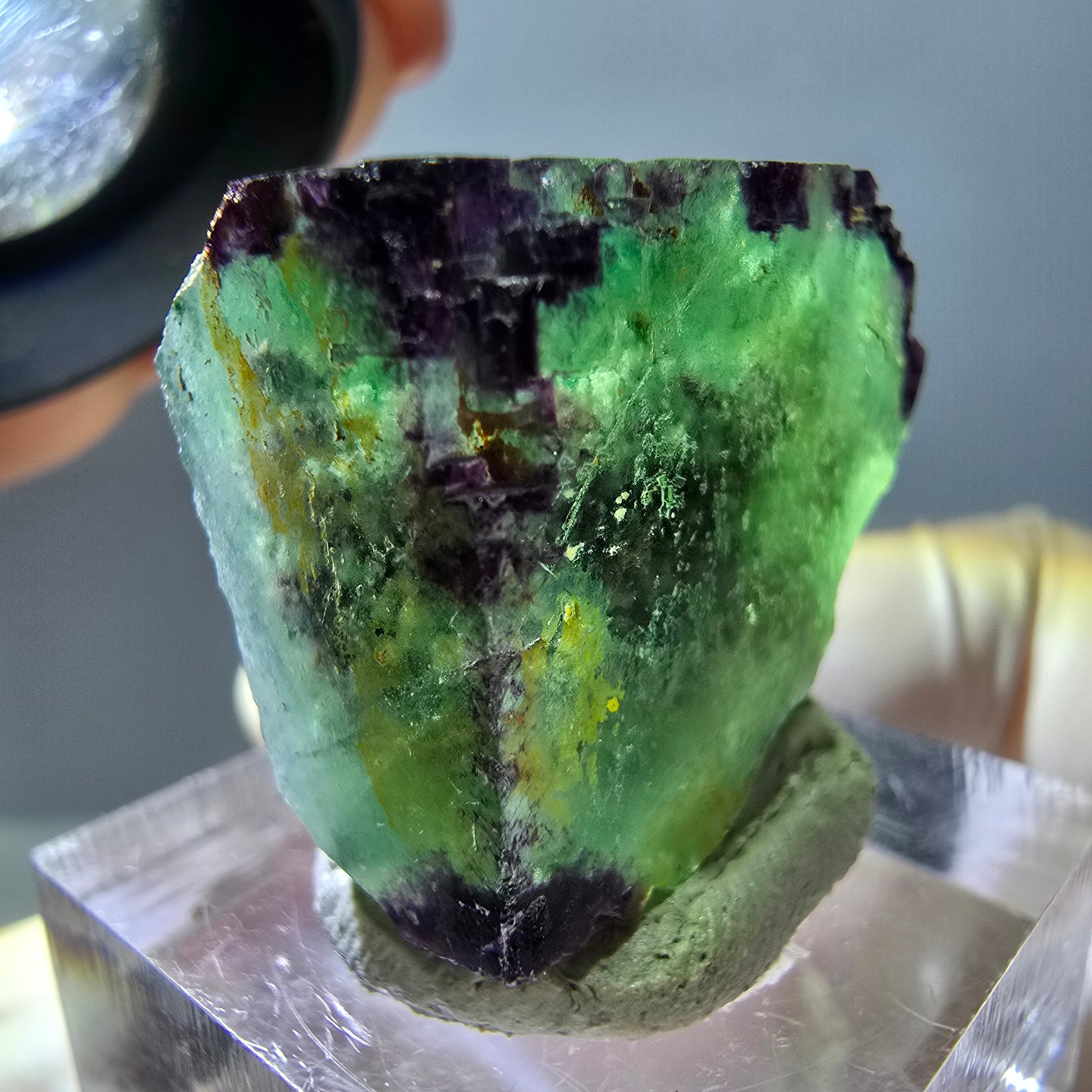 Cube de fluorite fantôme parqueté, zonal, vert violet Okorusu, Namibie 24*22*17mm