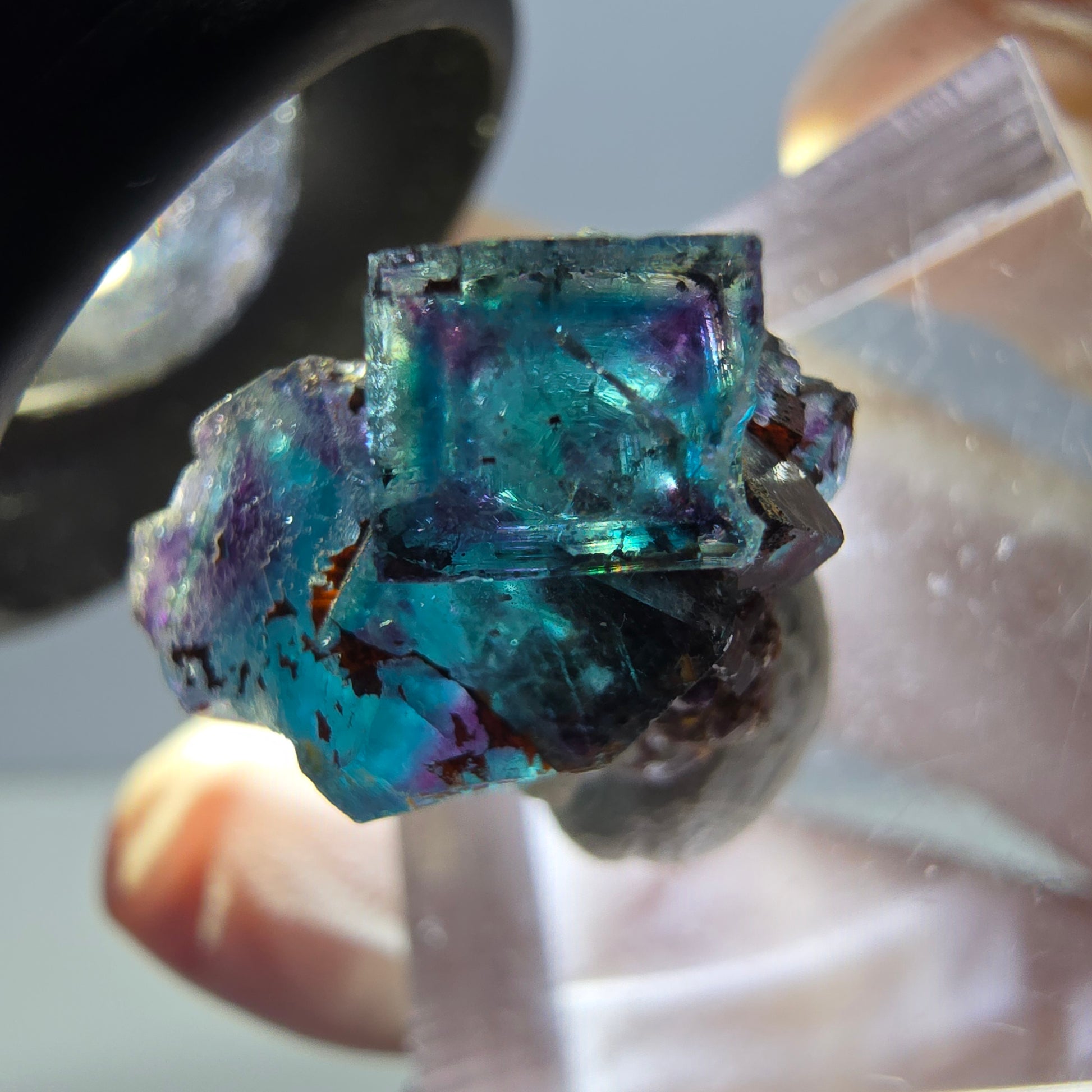 Spécimen de cube de fluorite fantôme - Cristaux transparents vert-violet rares