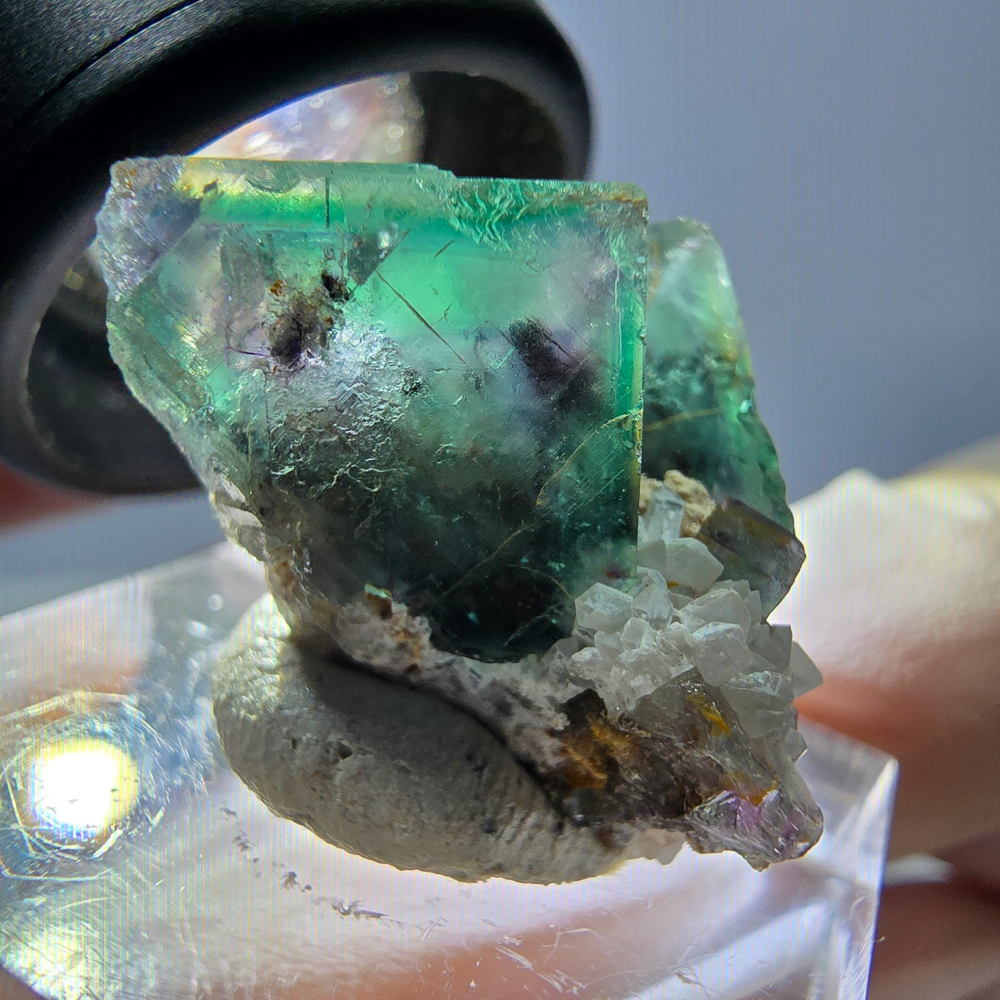 - Rare spécimen de cube de fluorite transparent vert-violet