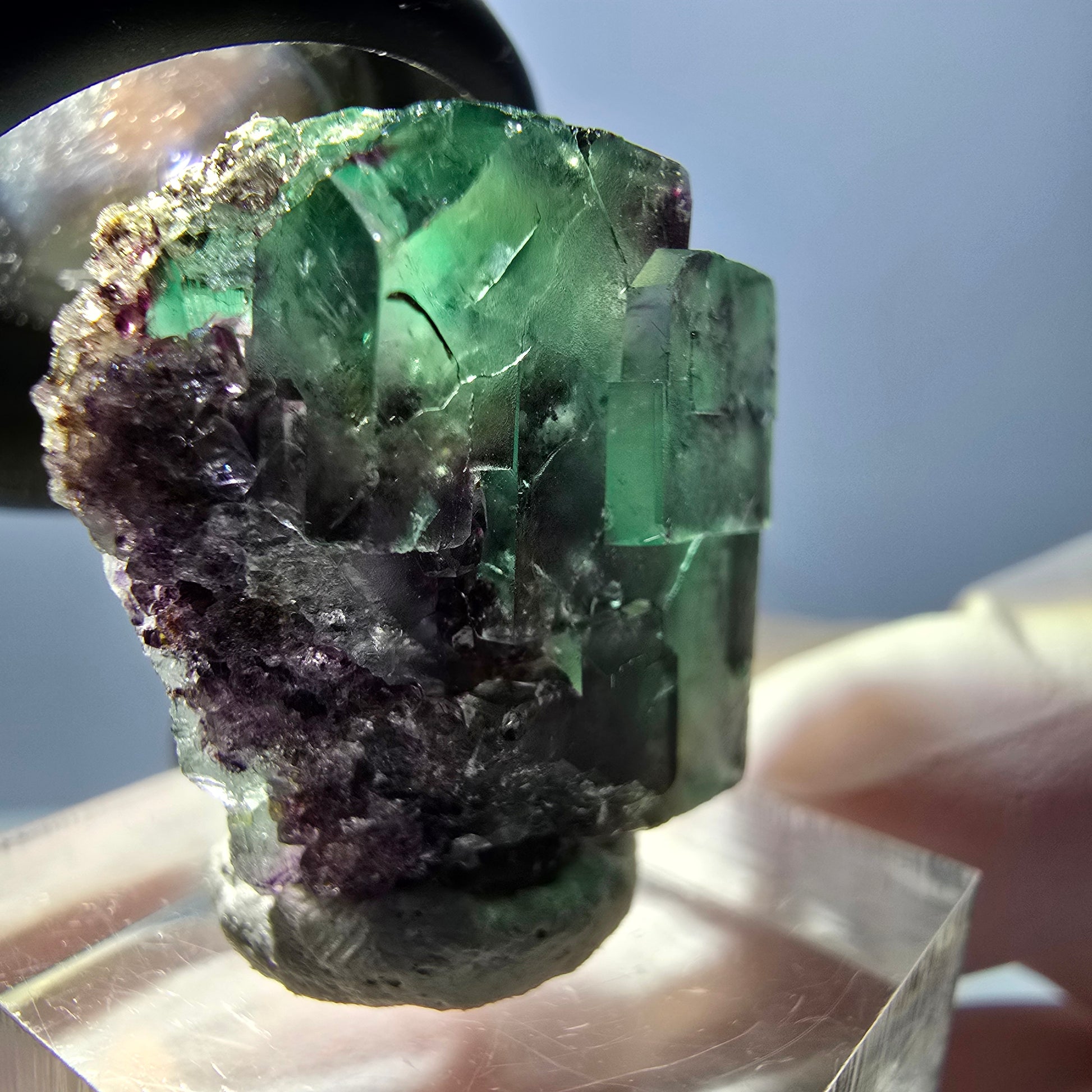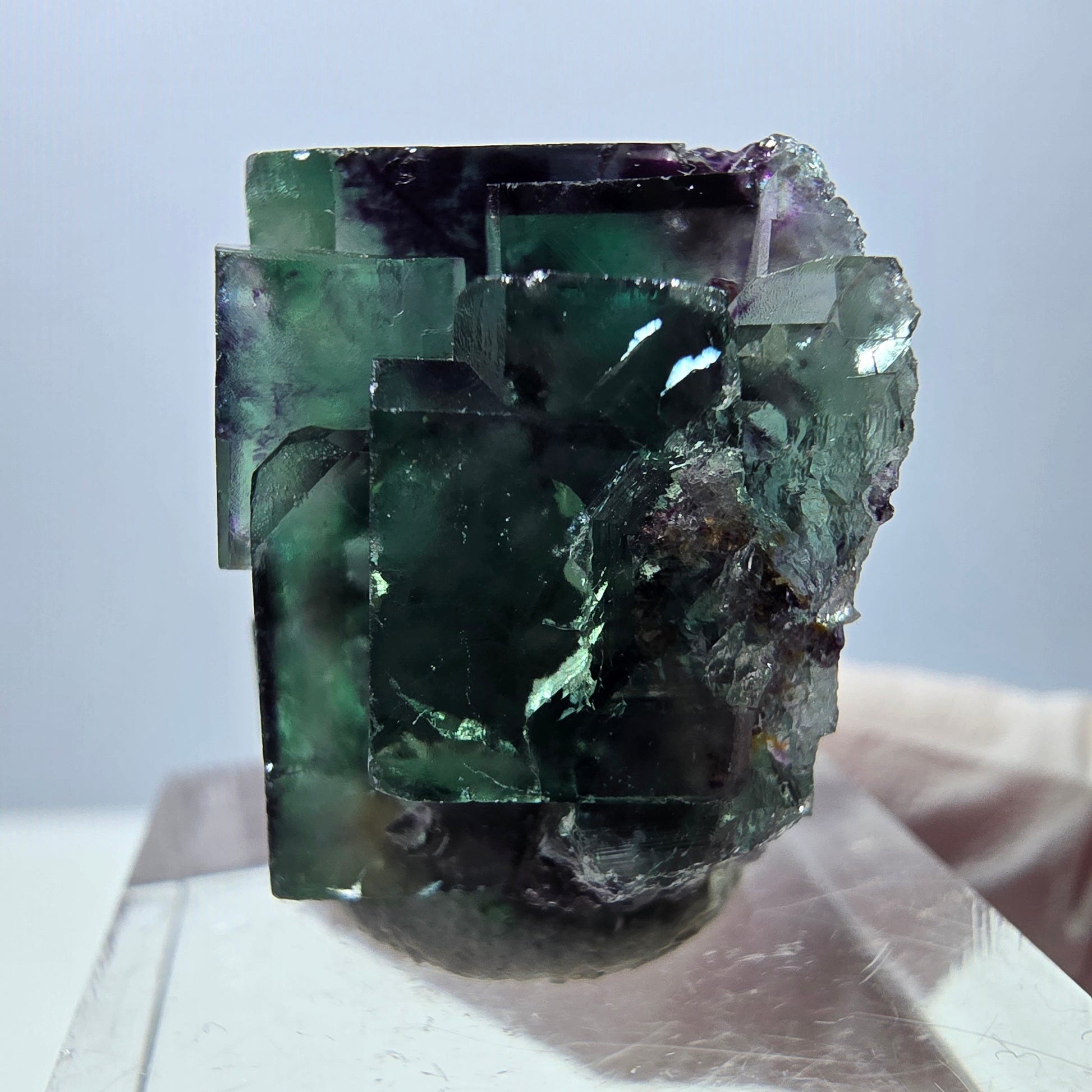 - Rare spécimen de cube de fluorite transparent vert-violet