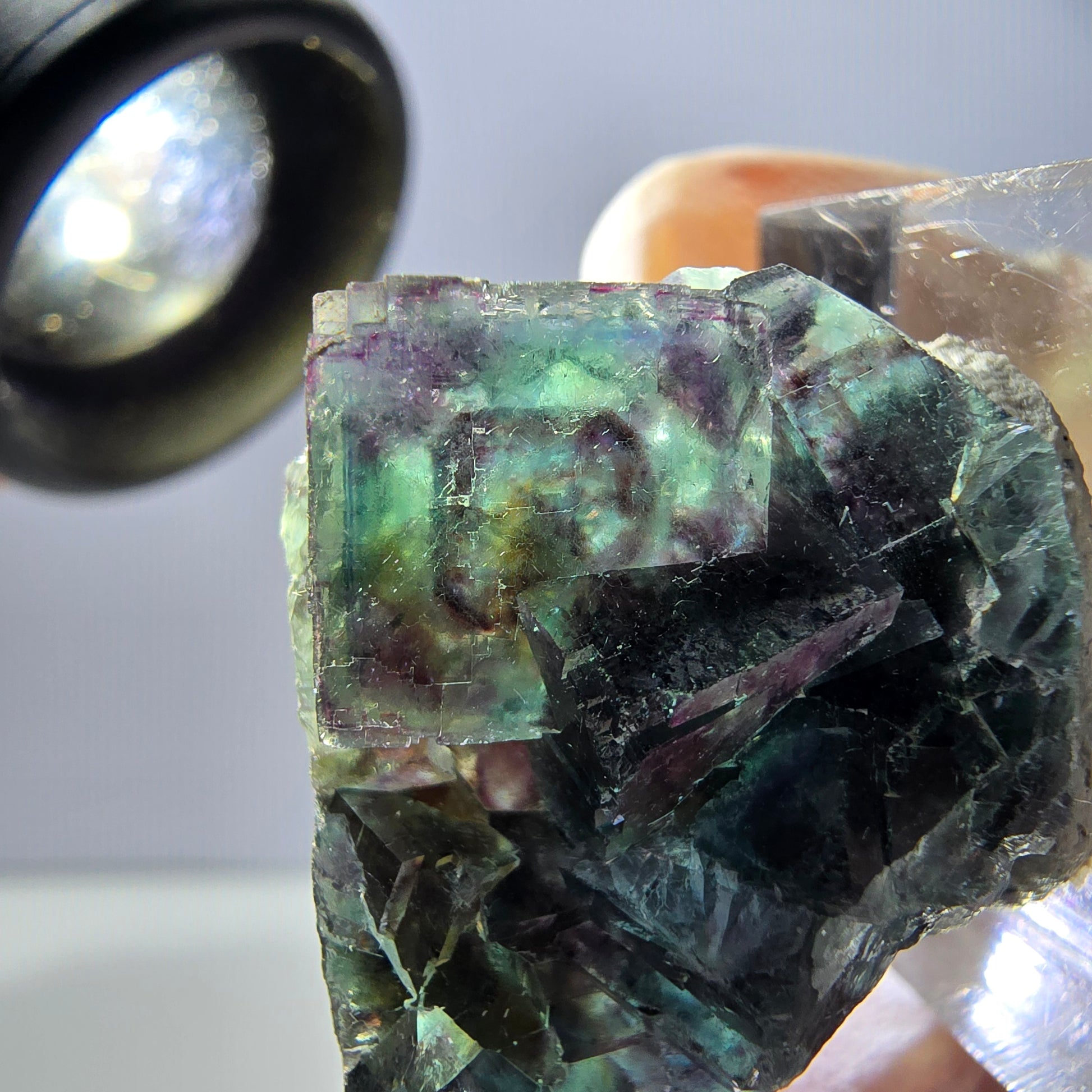 Spécimen de cube de fluorite fantôme, parqueté vert violet Okorusu, Namibie 29*21*12 mm