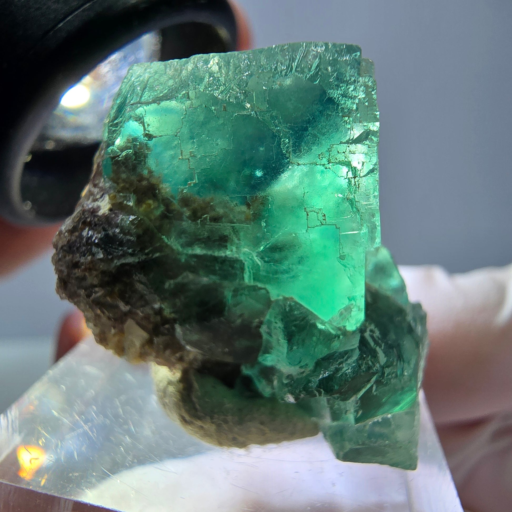Le parquetage fin des cristaux et la coloration transparente font de ce spécimen de cube de fluorite un véritable accroche-regard et un ajout précieux à toute collection.