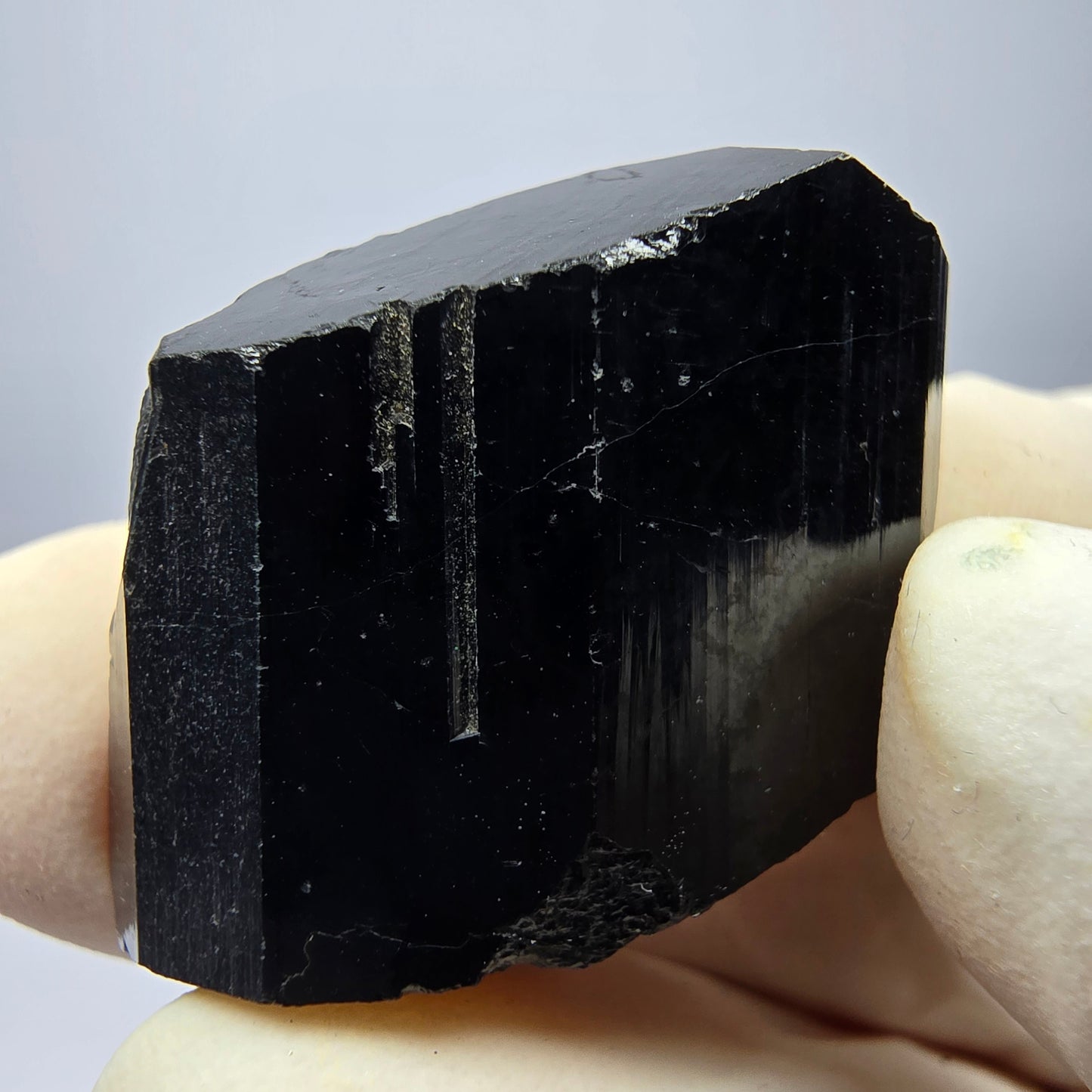 Découvrez cet impressionnant spécimen minéral en tourmaline Schörl, qui impressionne par sa surface noire et brillante et sa forme symétrique. Cet étage exquis mesure 33 x 22 x 9 mm et pèse 10 g. La tourmaline Schörl provient de la célèbre région d'Erongo en Namibie, connue pour ses minéraux de haute qualité.