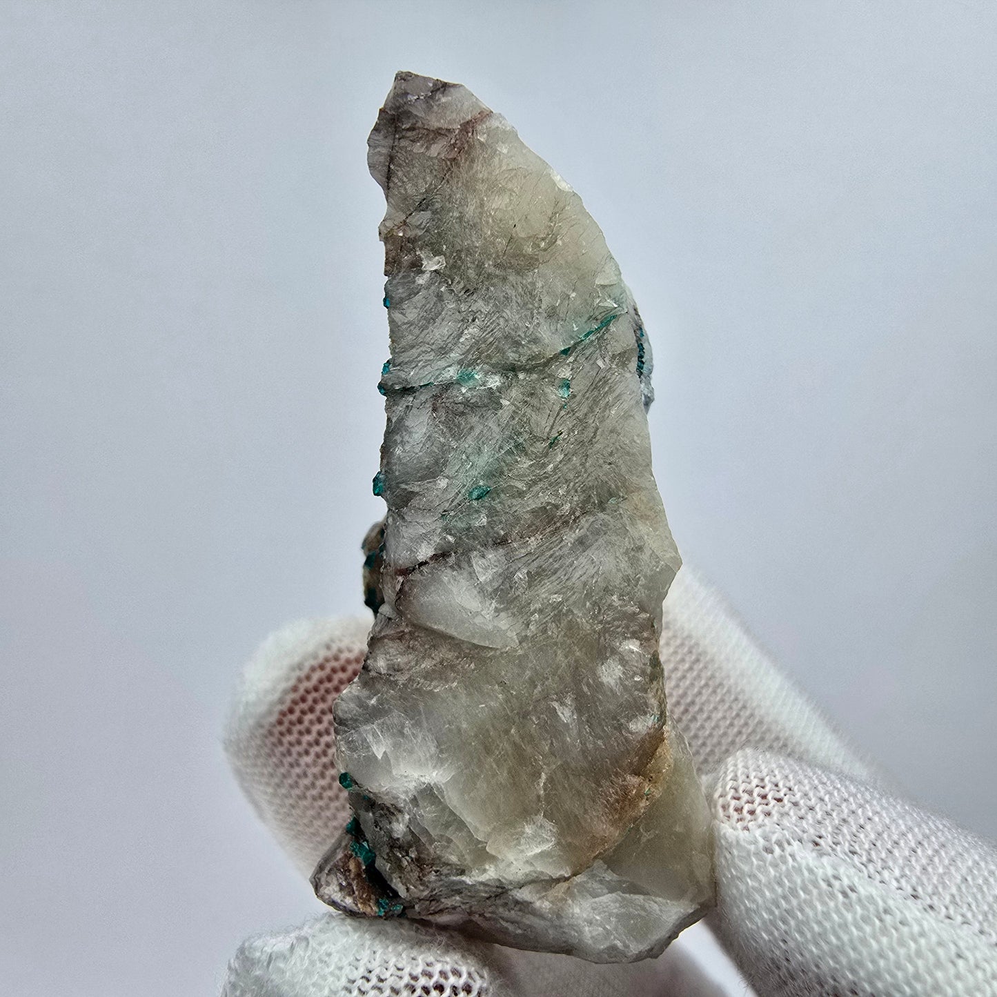 Rare spécimen de dioptase sur quartz Kaokoveld, Namibie 49*26*19mm Collection de minéraux