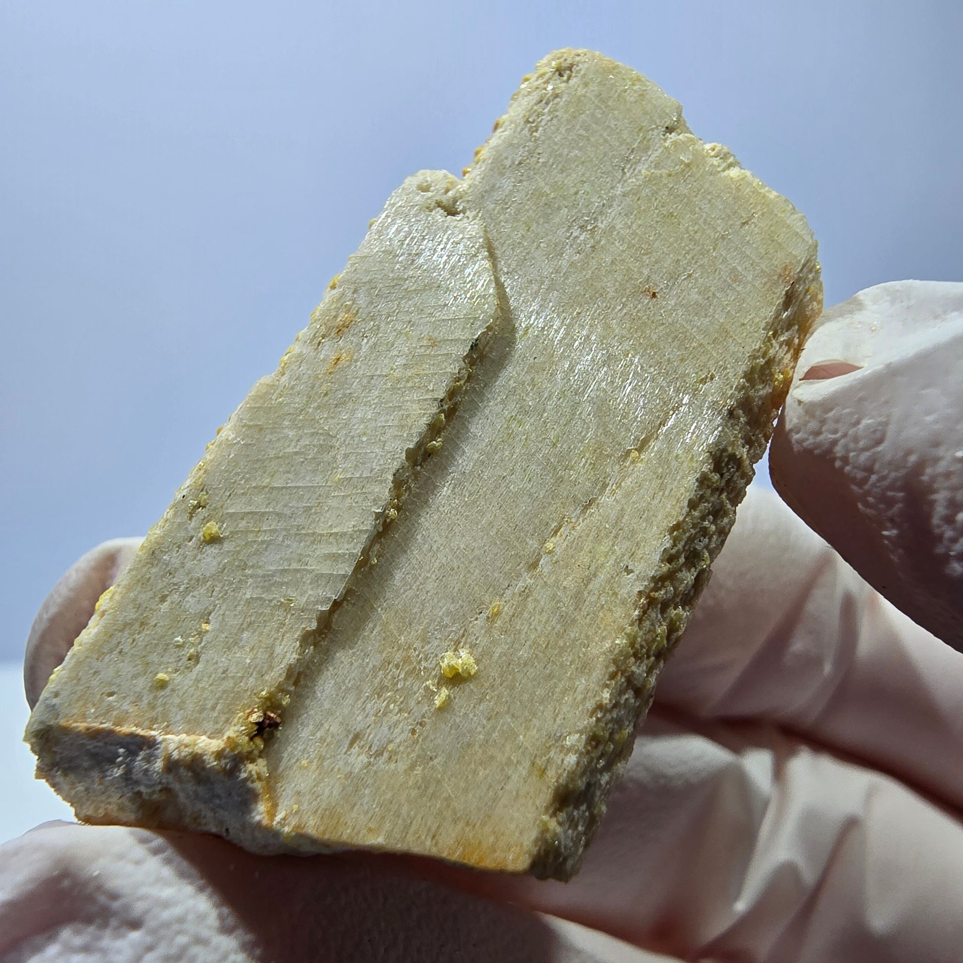 - Particularité : Orthoclase blanc-beige avec des cristaux de tourmaline schorl noire et des cubes de fluorite verte