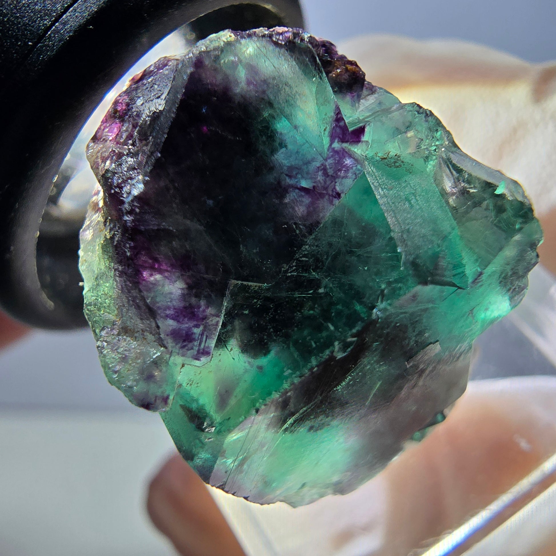 Mesurant 27 x 19 x 19 mm et pesant 13 g, ce cristal est un objet de collection idéal ou un cadeau original pour les amateurs de minéraux. Ses teintes vertes et violettes éclatantes attirent tous les regards et font de cette fluorite un spécimen véritablement unique.