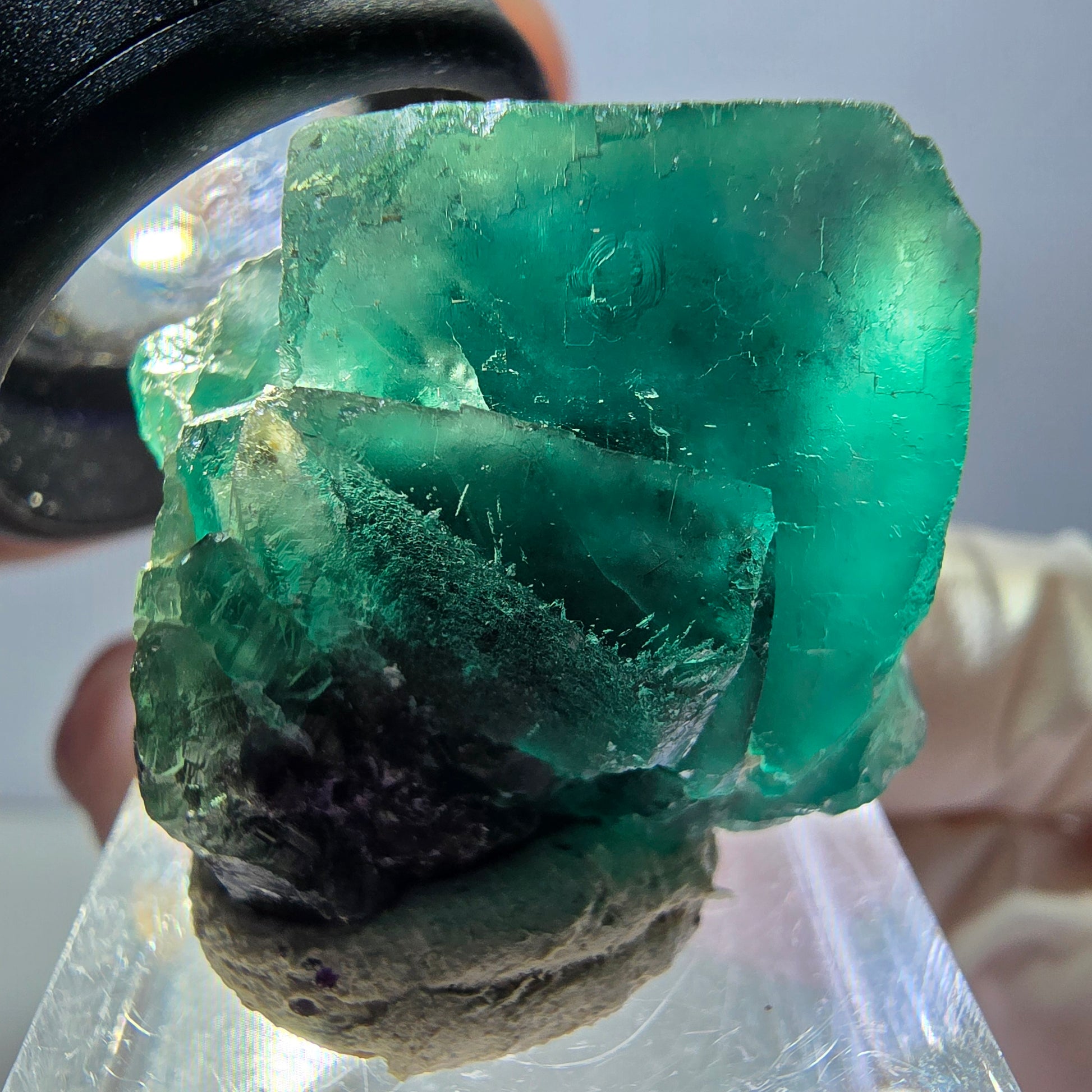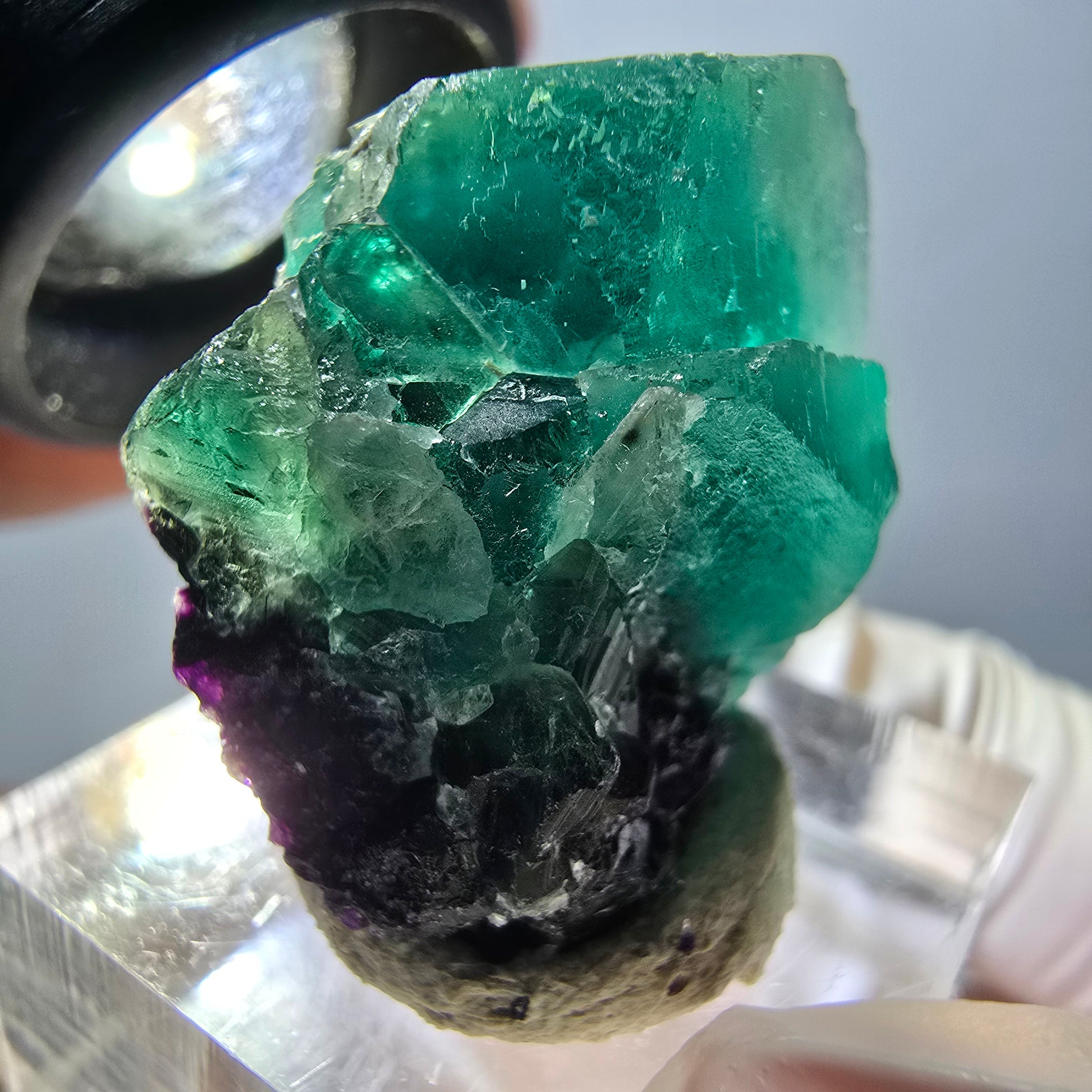 - Rare spécimen de cube de fluorite transparent vert-violet