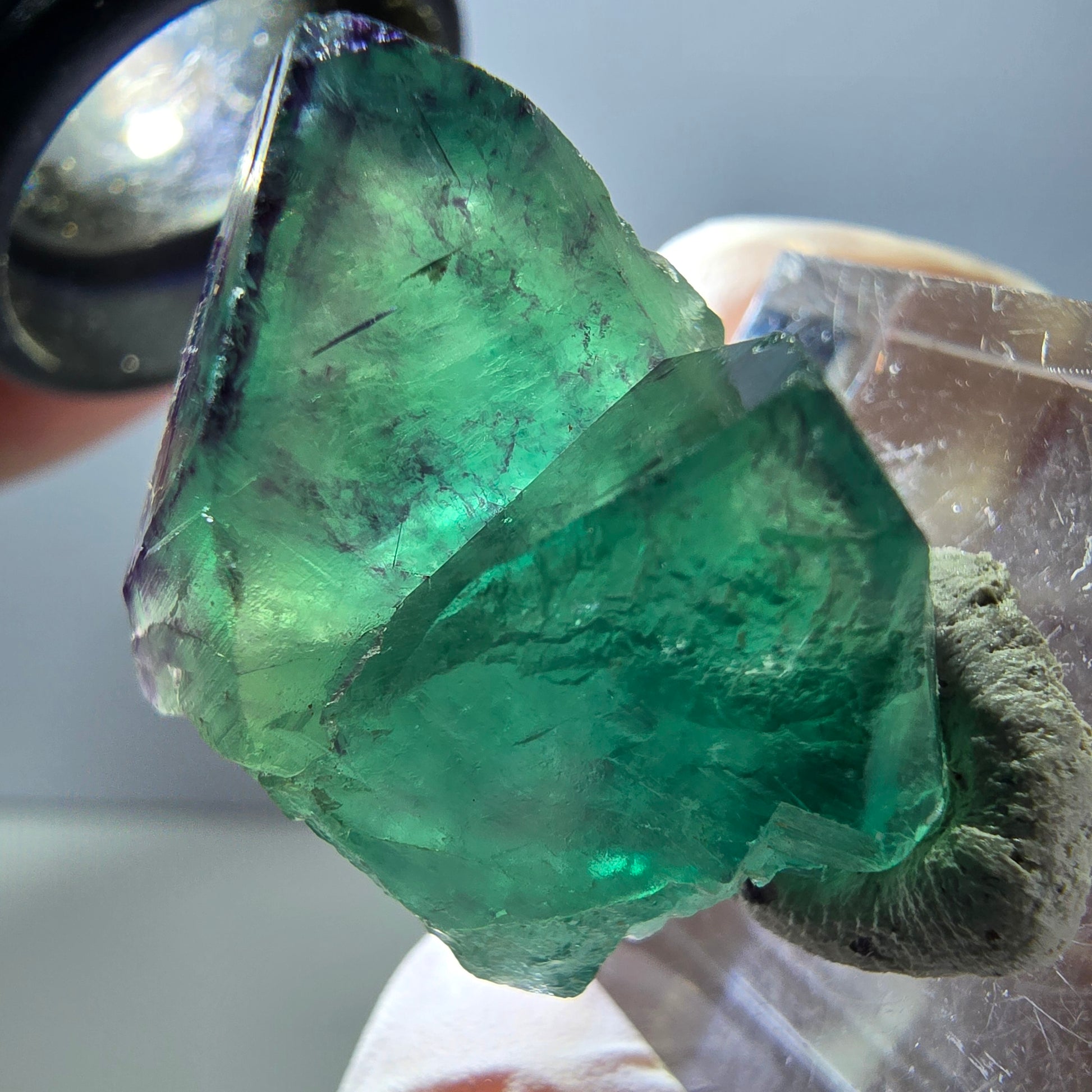Spécimen rare de cube de fluorite fantôme, vert-violet, Okorusu, Namibie, 29 x 20 x 16 mm