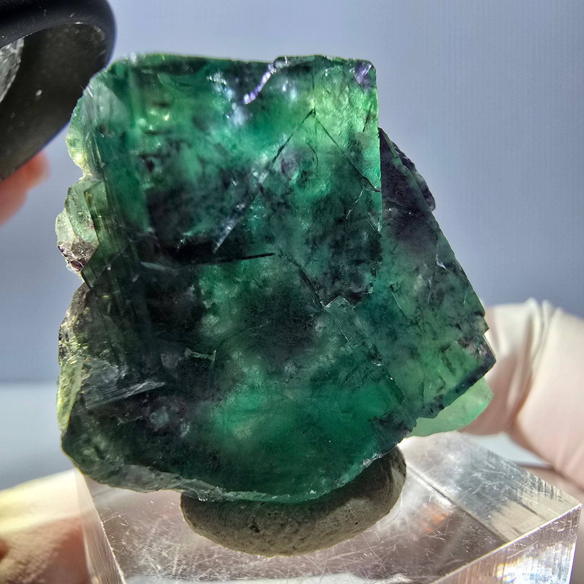 Spécimen rare de cube de fluorite fantôme, vert-violet, Okorusu, Namibie, 33 x 32 x 16 mm