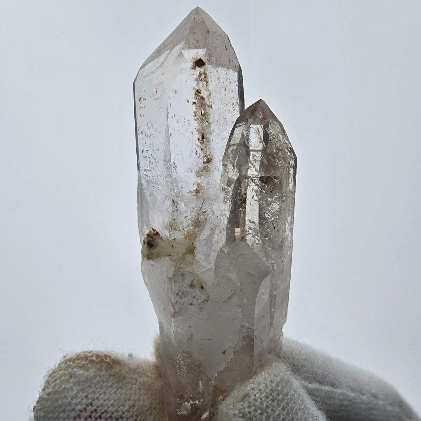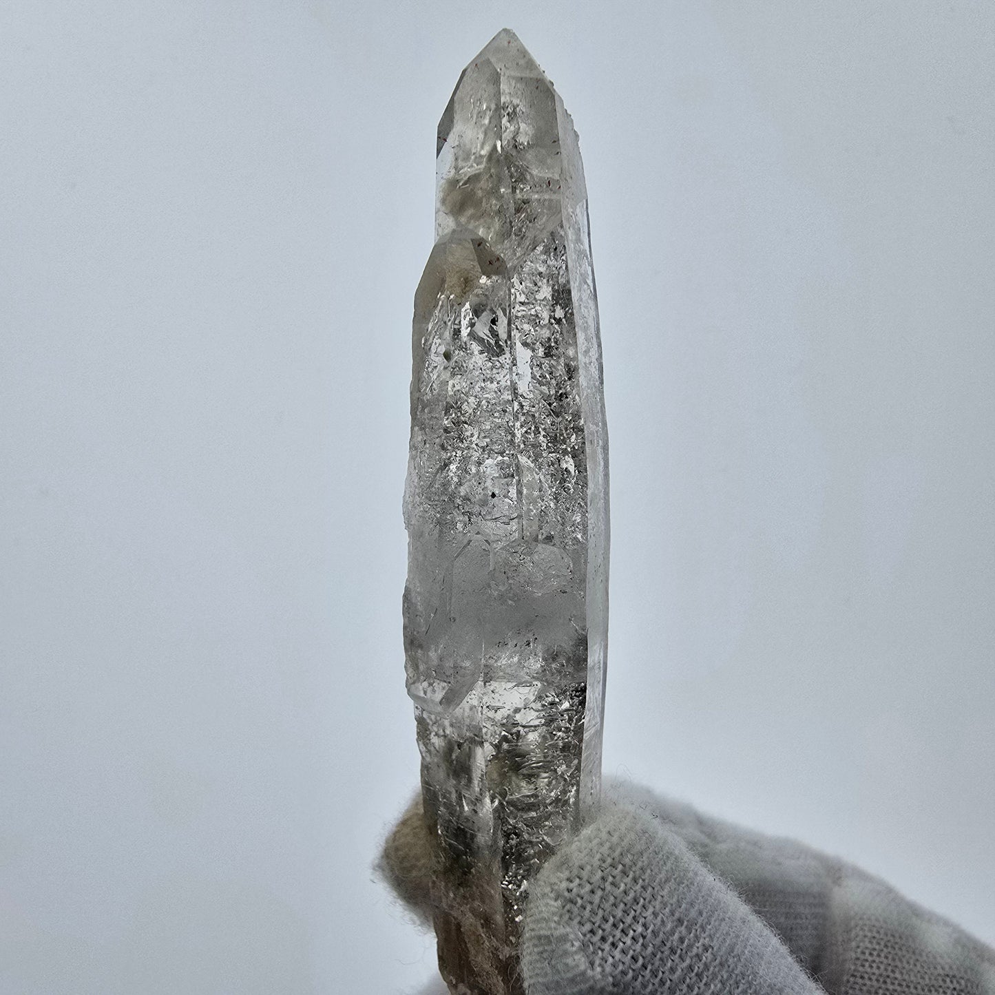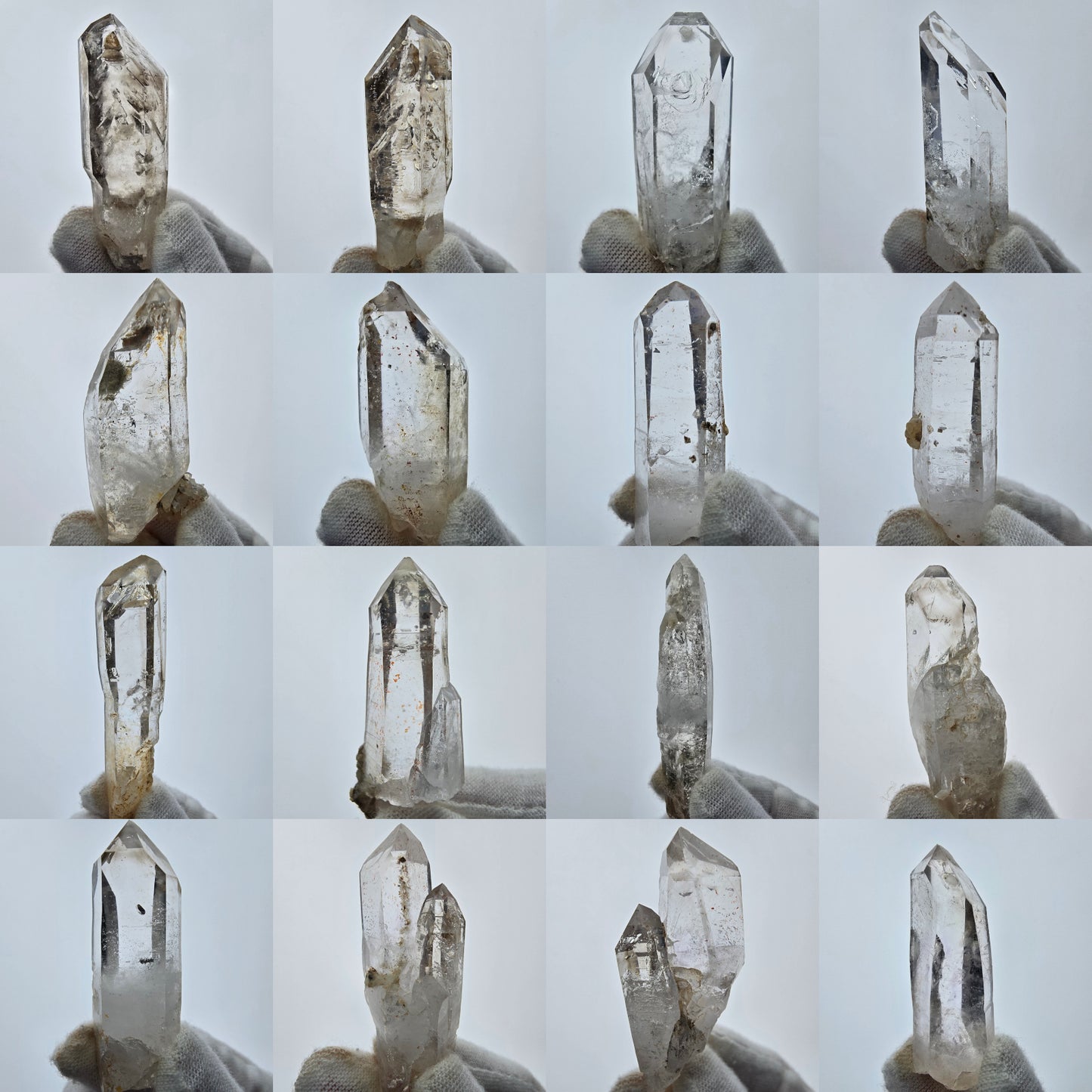 Entdecken Sie unser wunderschönes Lot mit 12 klaren, braun-weißen, transparenten Rauchquarz Kristallspitzen aus Goboboseb, Namibia. Diese einzigartigen Kristalle sind nicht nur optisch beeindruckend, sondern auch in ihrer Form und Struktur äußerst vielfältig. Einige der Kristalle weisen eine Zepterform (Zepterquarz) auf, während andere als Doppelender-Kristalle (Doppelender Quarz, DT Quarz) oder mit schönen fensterförmigen Einschlüsse (Fensterquarz) präsentiert werden.