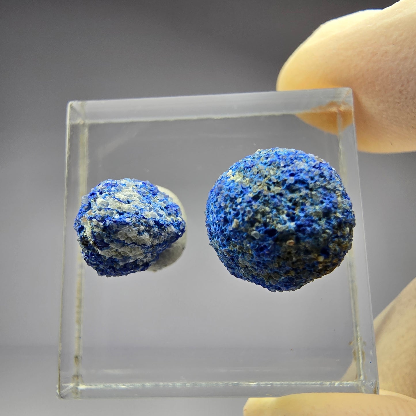 2x seltene Azurit Blueberry - Set 12,2mm + 9,2mm Durchmesser aus USA, New Mexico