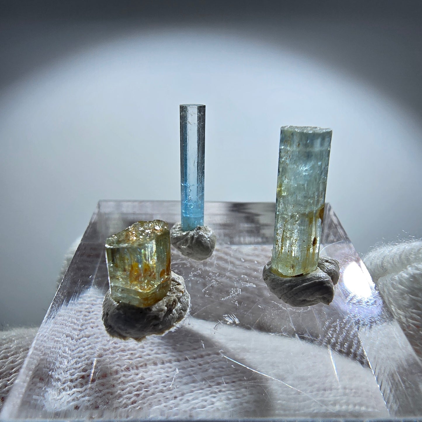 3x Aquamarin Kristalle, blau - 3er Set Erongo, Namibia 6-13mm