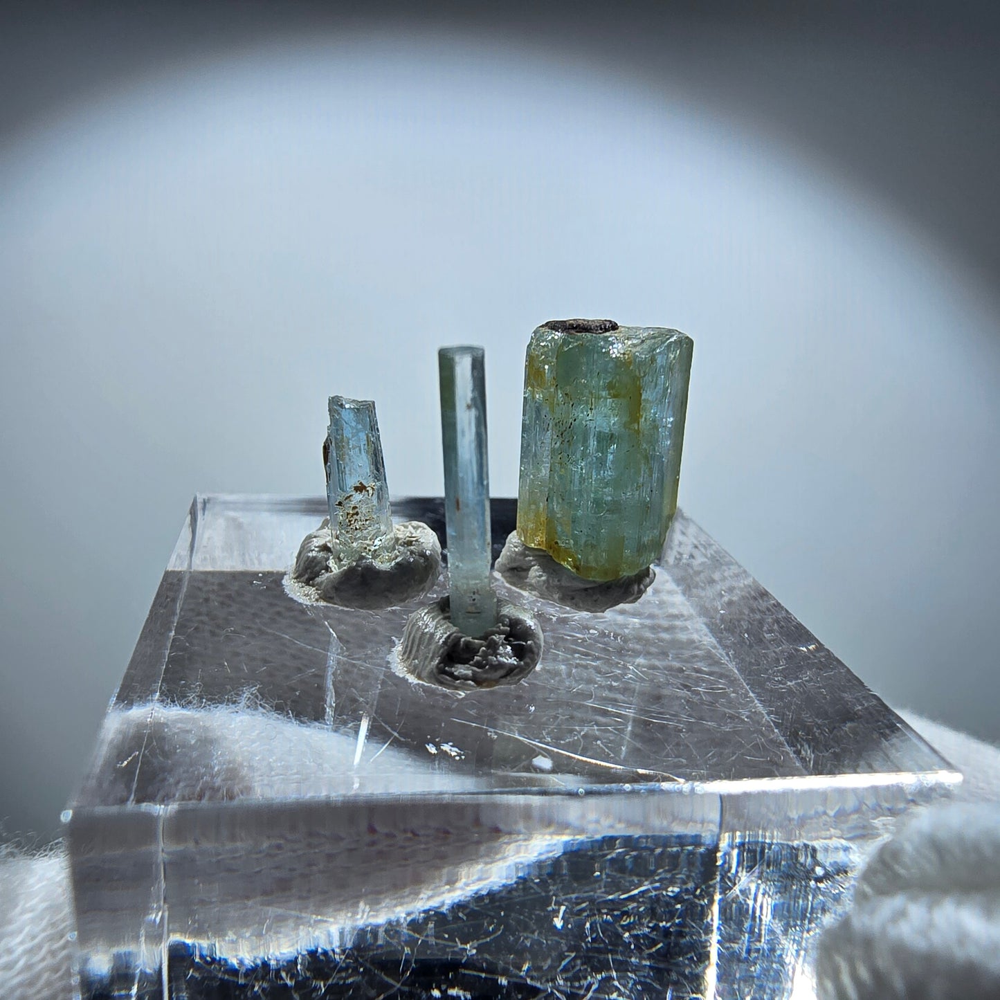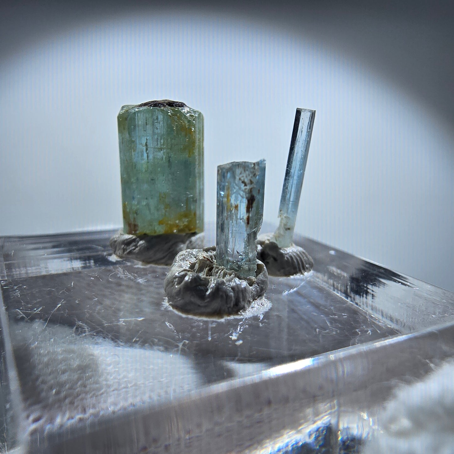 3x Aquamarin Kristalle, blau - 3er Set Erongo, Namibia 8-11mm