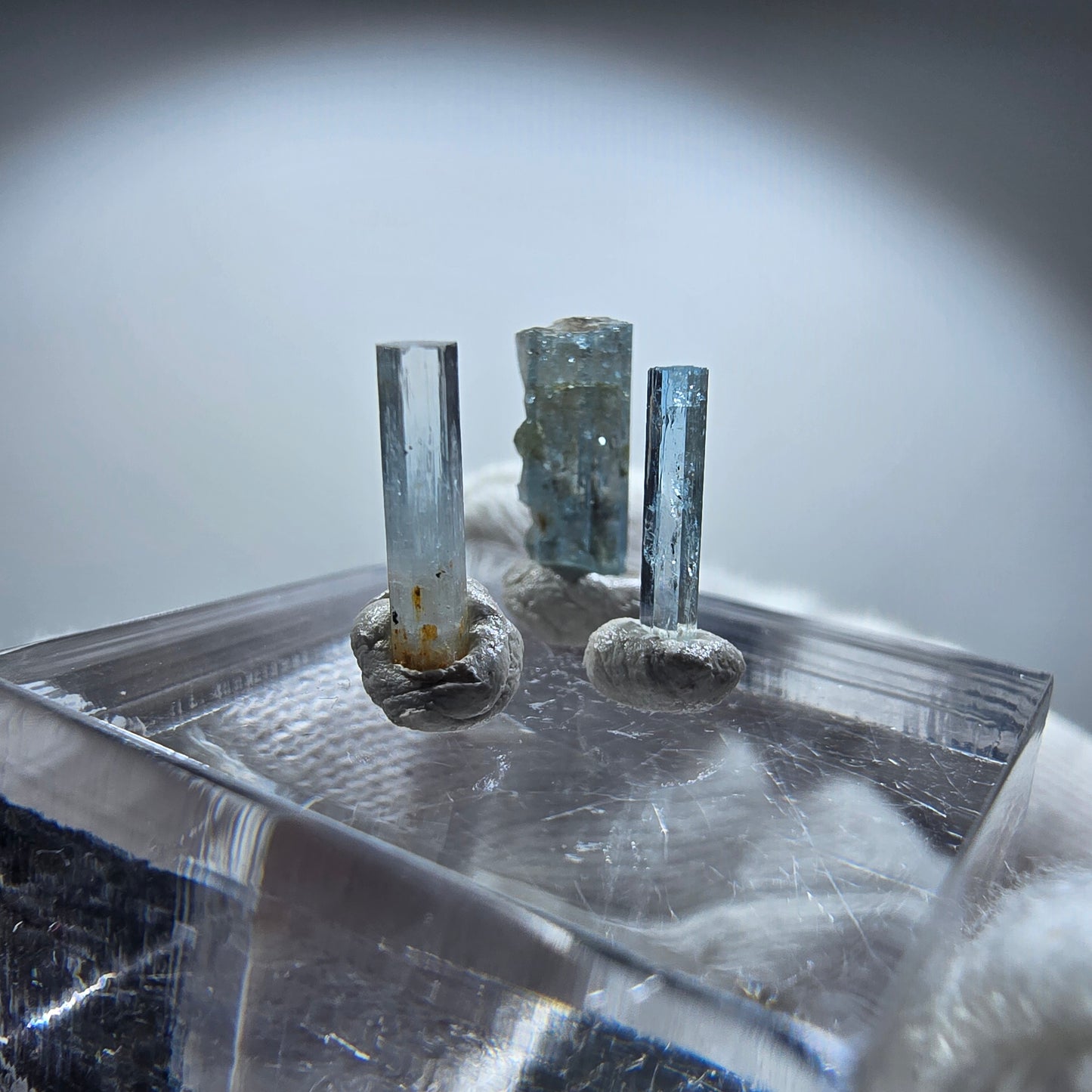 - 3 hellblaue, klare Aquamarin Kristalle