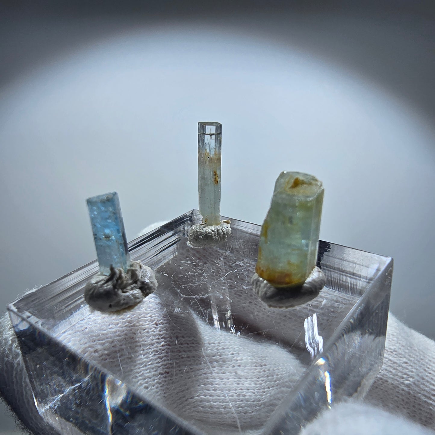 3x Aquamarin Kristalle, blau - 3er Set Erongo, Namibia 9-14mm