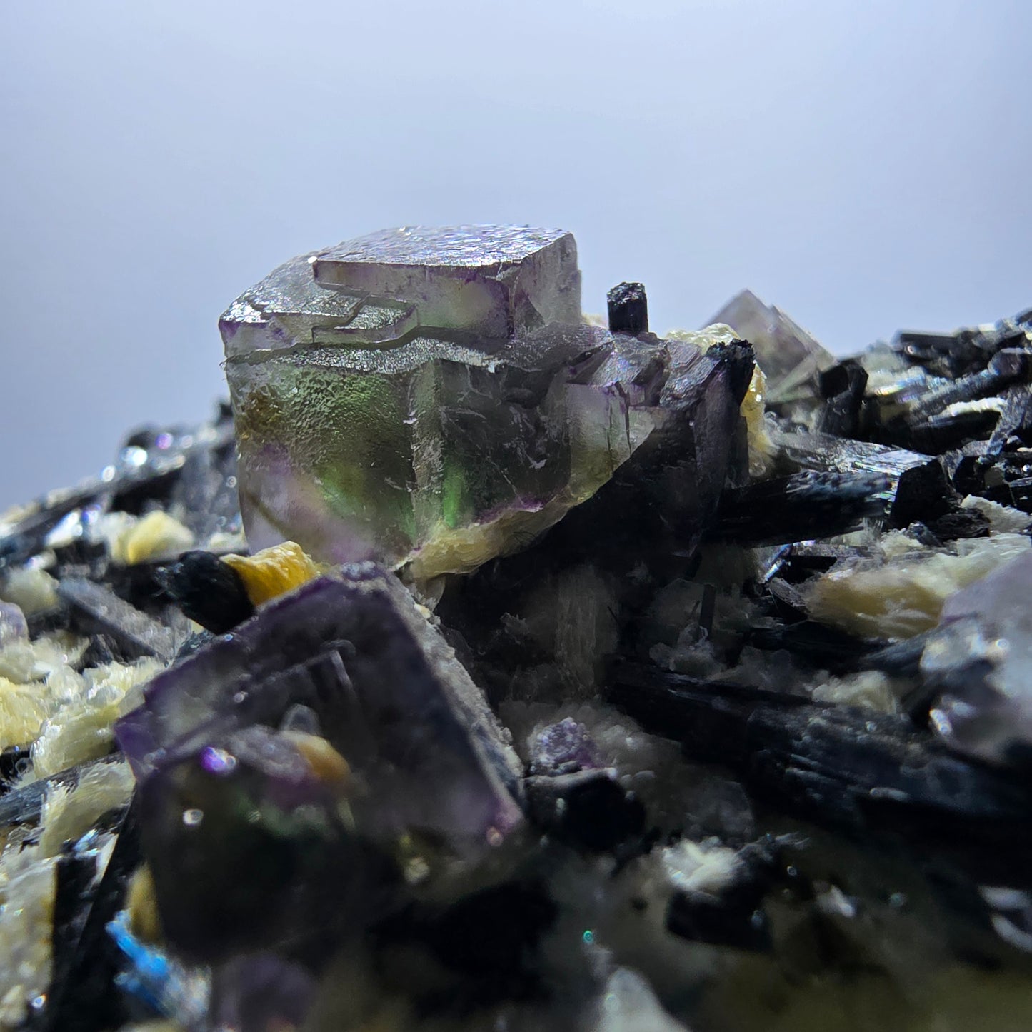 Bunte Phantom Fluorit mit Schörl Turmalin und Muskovit