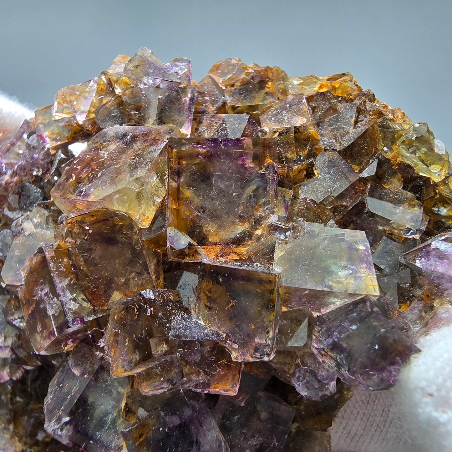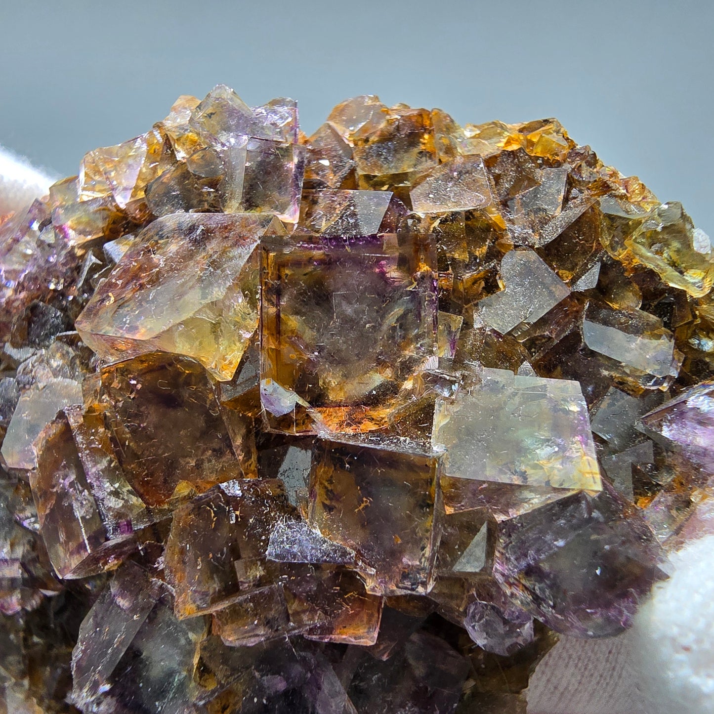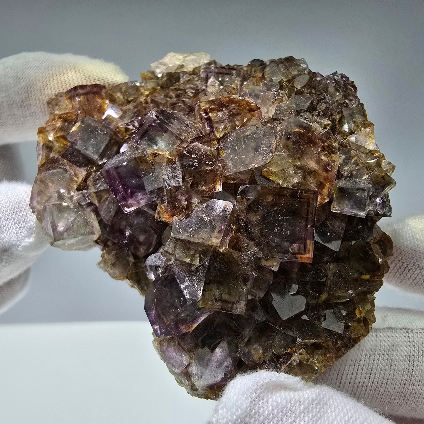 Entdecken Sie die faszinierenden Farben und die einzigartige Struktur unserer bunten Phantom Fluorit Würfel. Diese wunderschöne Stufe besticht durch klare grün, lila und gelb gefärbte Fluorit Würfel, die mit beeindruckenden Würfel-Phantomen im Inneren aufwarten. Jeder Würfel ist ein kleines Kunstwerk der Natur und eignet sich hervorragend für Sammler und Liebhaber von Mineralien.