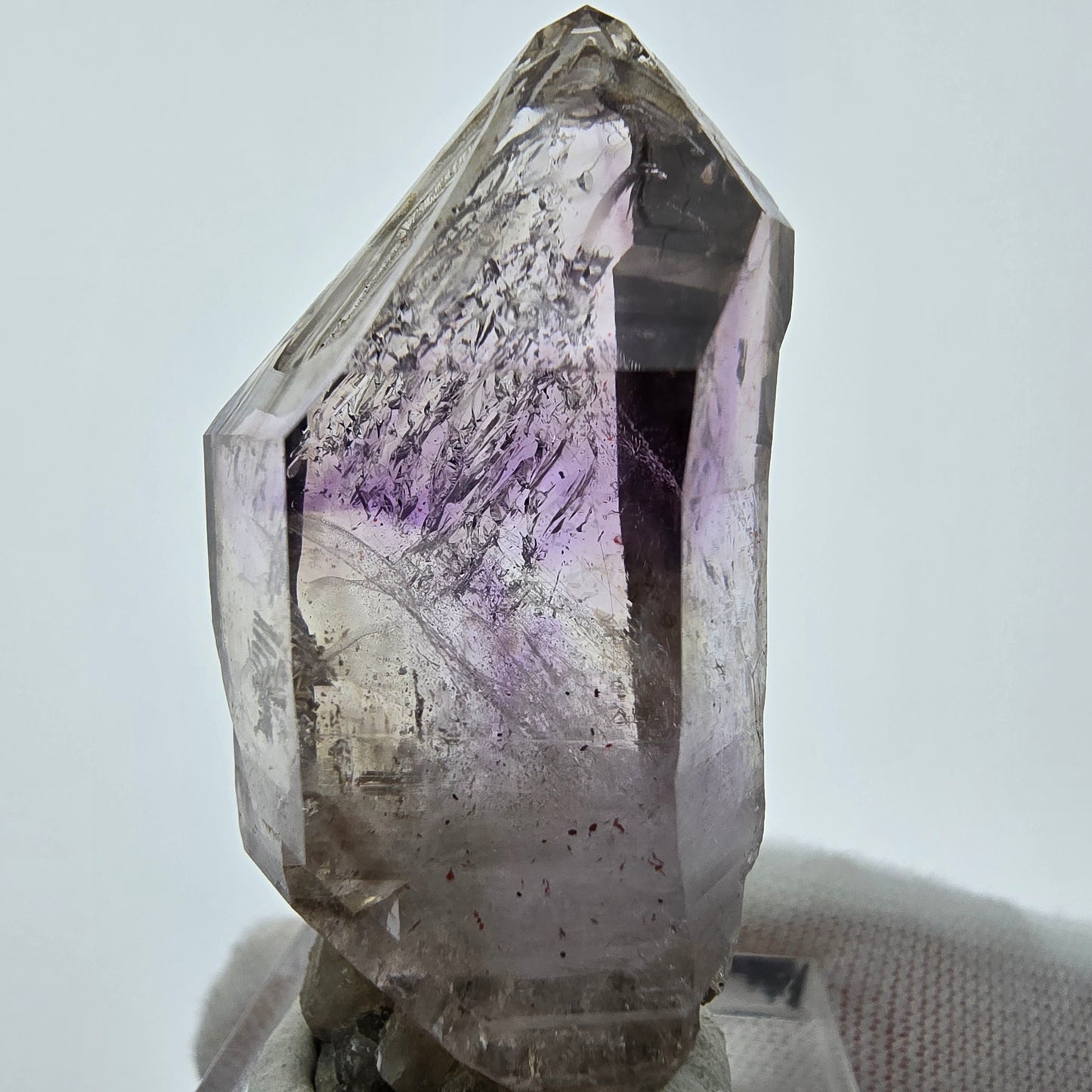 Die zepterförmige Kristallform (Zepterquarz) verleiht dem Stück eine elegante Note. Mit den Maßen von 46 x 21 x 17 mm und einem Gewicht von 21 g ist dieser Kristall nicht nur ein Blickfang, sondern auch leicht zu handhaben. Gefunden wurde dieser besondere Kristall in Goboboseb, Namibia.