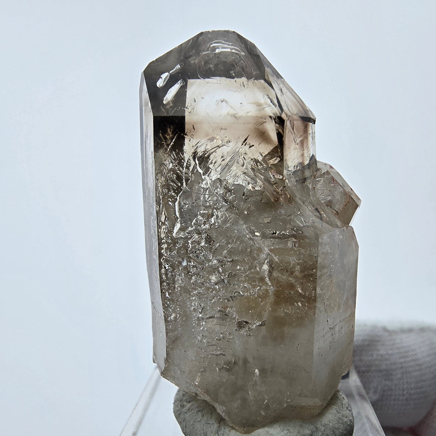 Entdecken Sie unseren faszinierenden Enhydro Phantom Rauchquarz Doppelender mit vier Blasen. Diese wunderschöne, klare Rauchquarz-Kristallspitze besticht durch ihre braun-weiß-transparente, phantomartige Kristallbildung, die den einzigartigen Charakter des Phantomquarzes unterstreicht. Die Doppelender-Kristallspitzen verleihen diesem Stück eine besondere Eleganz und machen es zu einem echten Blickfang.