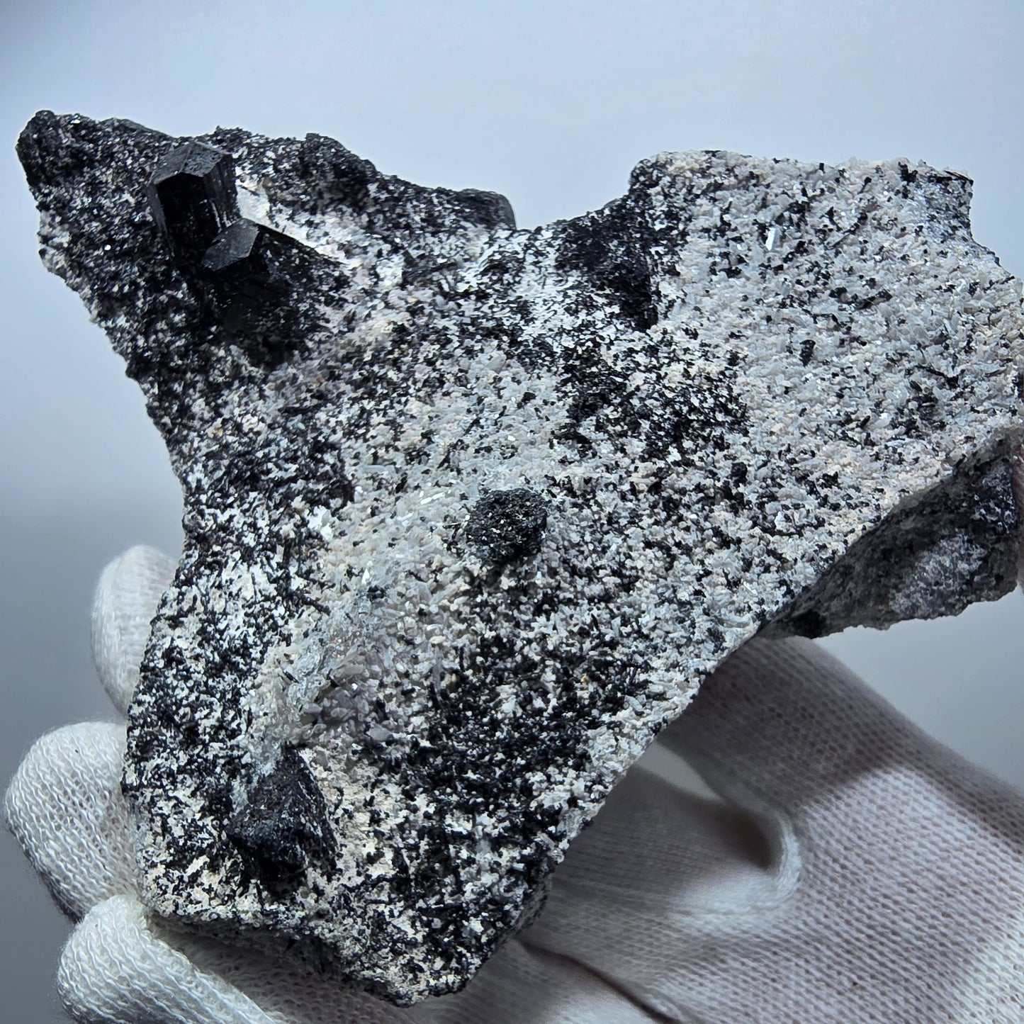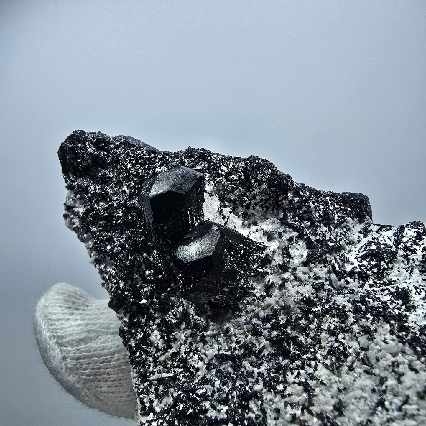 Entdecken Sie diese beeindruckende Mineralienstufe, die aus wundervollen, schwarz glänzenden Schörl Turmalin Kristallen und strahlenden weißen Quarz Kristallen besteht. Die harmonische Kombination dieser beiden Mineralien macht dieses Stück zu einem absoluten Blickfang für Sammler und Liebhaber von Naturwundern.