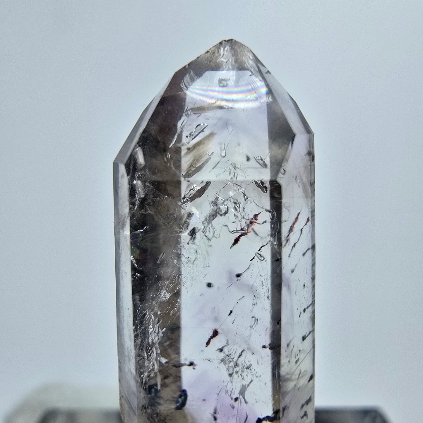 Entdecken Sie den einzigartigen Harlekin Phantom Amethyst Kristall, eine seltene und faszinierende Harlekin Amethyst Kristallspitze. Diese feine Kristallspitze misst 28*9*7 mm und hat ein Gewicht von 3,32 g. Sie besticht durch ihre lila, weiß transparenten Farbnuancen und die atemberaubenden Phantome, die im Inneren sichtbar sind.