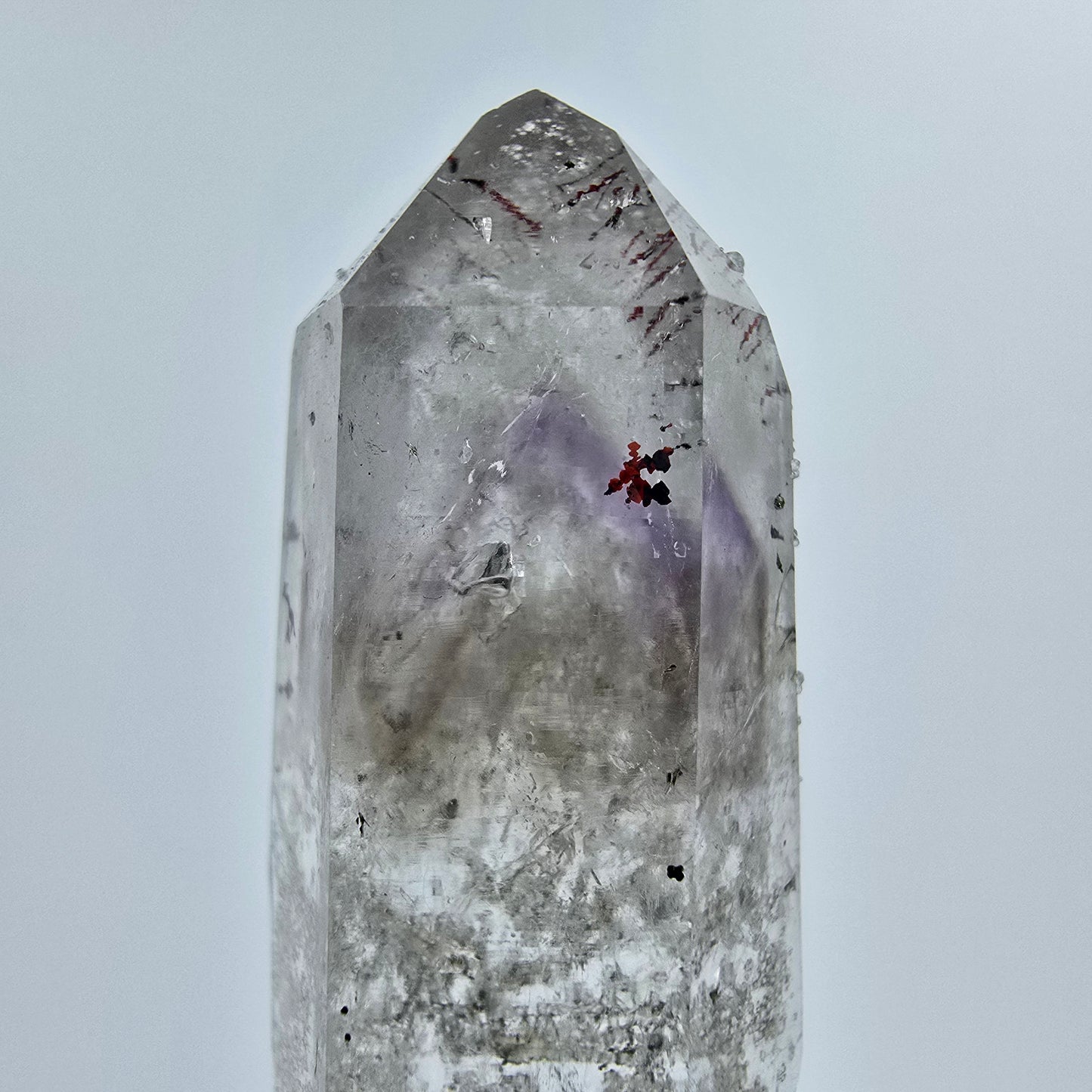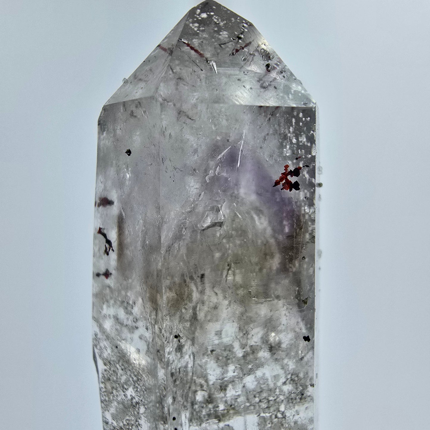 - Lila-weiß-transparente Kristallspitze mit Phantomen