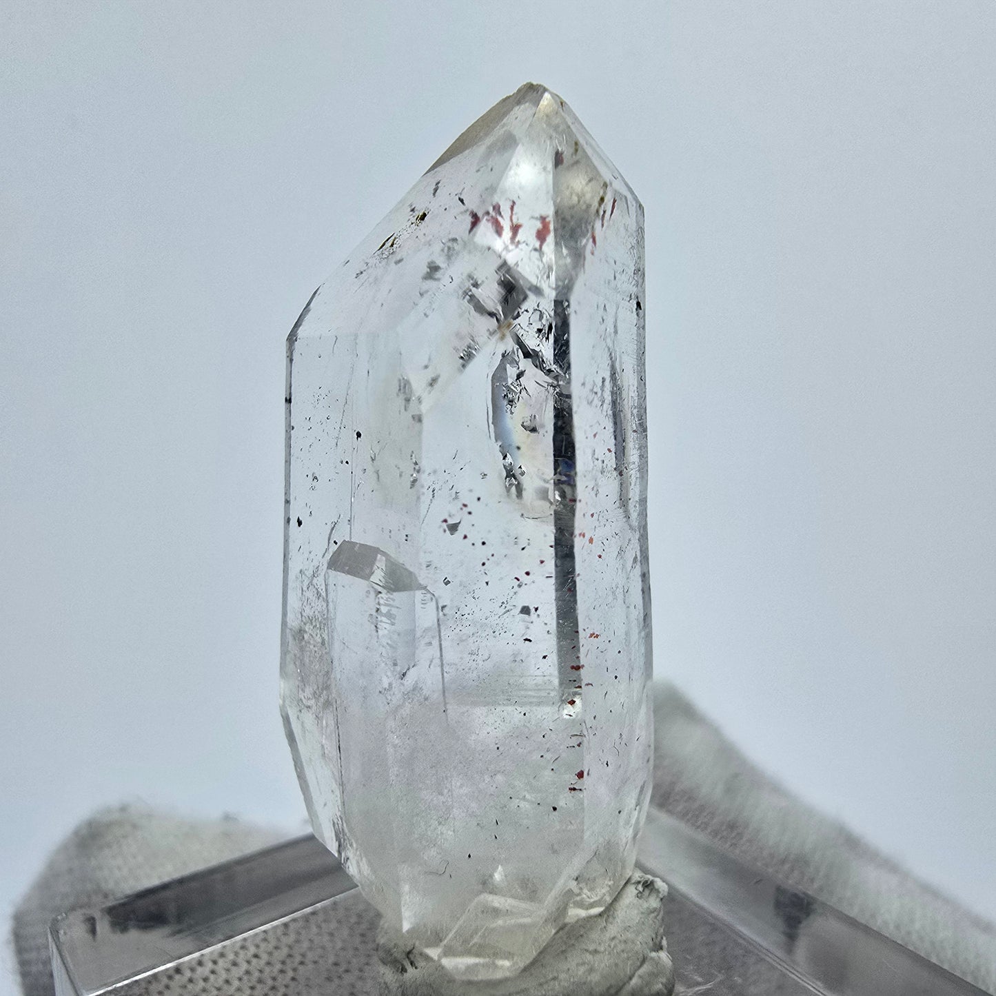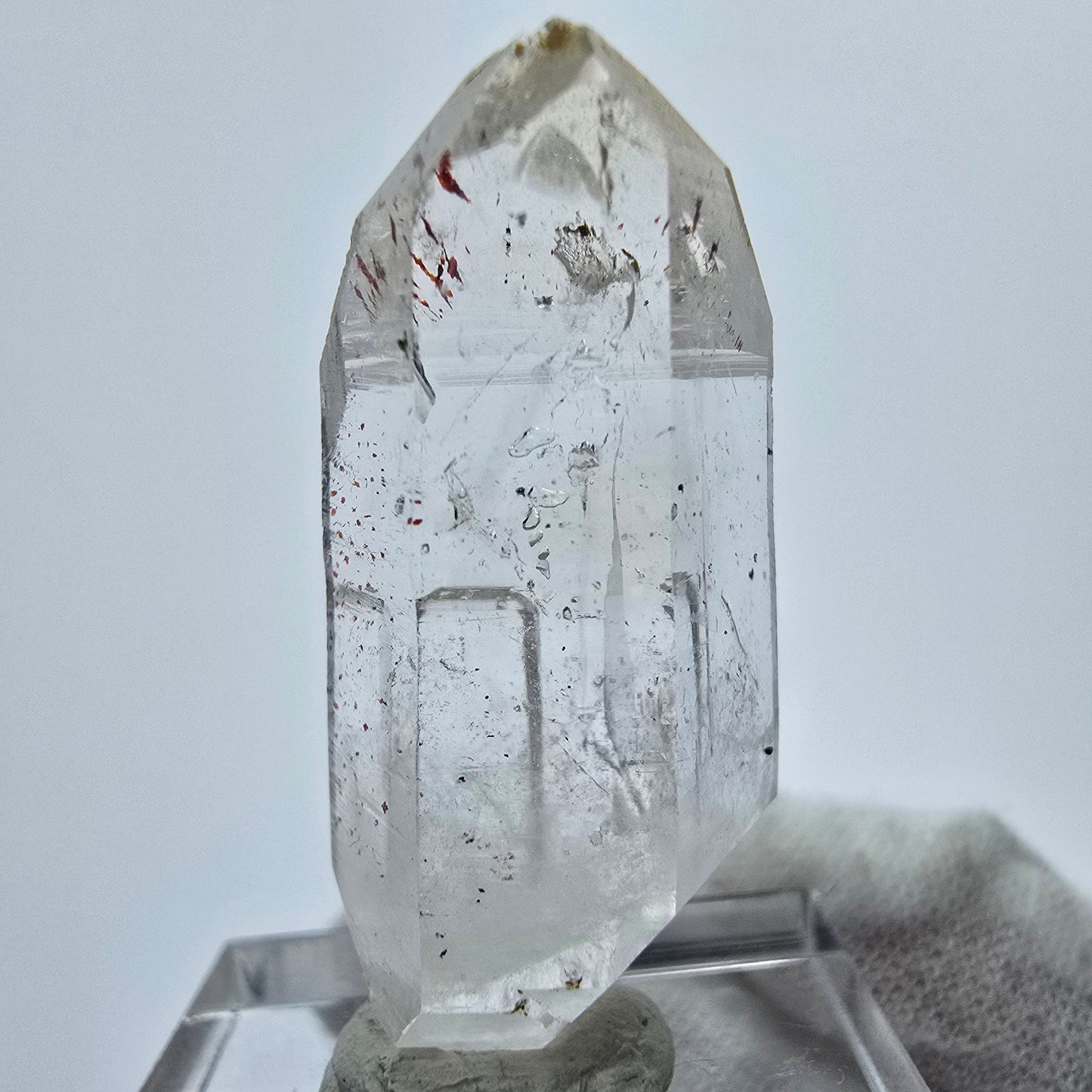 - Besonderheiten: Doppelender Kristallform, grau Phantome, Hämatit-Einschlüsse