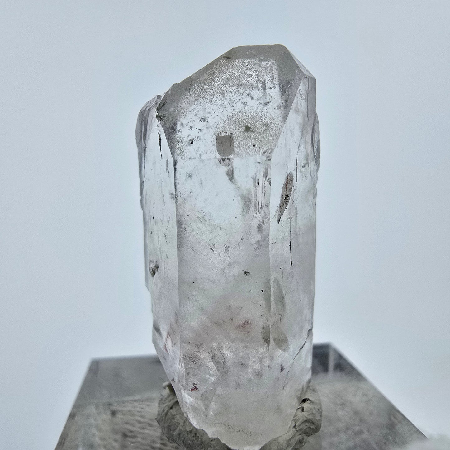Entdecken Sie den faszinierenden Harlekin Phantom Quarz, einen seltenen klaren weiß transparenter Quarz Kristall, der mit außergewöhnlichen feinen Details begeistert. Dieser spezielle Kristall mit den Abmessungen 30*17*12mm und einem Gewicht von 9g ist nicht nur visuell beeindruckend, sondern stammt auch aus der berühmten Streep Mine in Goboboseb, Namibia.