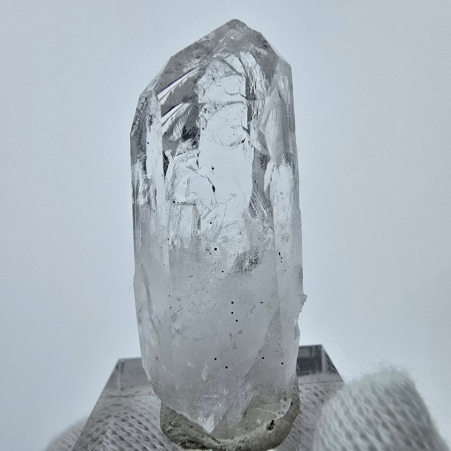 Die Maße der Quarzspitze betragen 41 * 17 * 15 mm und das Gewicht liegt bei 14 g. Dieser besondere Fund stammt aus der Streep Mine in Goboboseb, Namibia, einem bekannten Ort für hochwertige Mineralien.