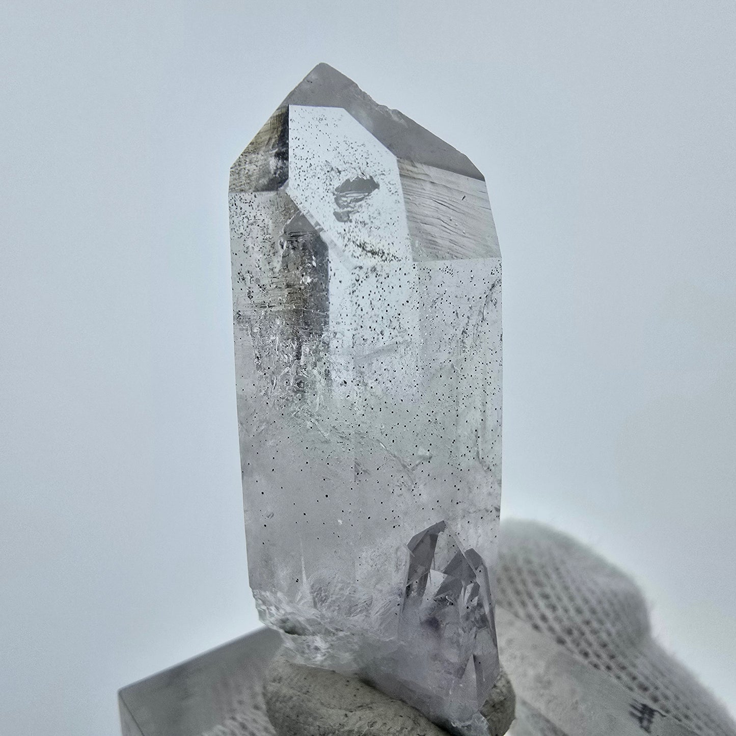 Entdecken Sie unseren einzigartigen klaren Lemurian Phantom Amethyst, eine seltene und faszinierende Kristallspitze, die die Schönheit der Natur widerspiegelt. Diese exquisite Amethyst-Spitze überzeugt durch ihre transparente, lila-weiße Farbe und die beeindruckenden Phantome, die sich im Inneren befinden. Die klaren Linien und horizontal gewachsenen Querrillen auf der Oberfläche sind typisch für Lemurian Quarz und verleihen diesem Kristall ein einzigartiges Charakter-Design.