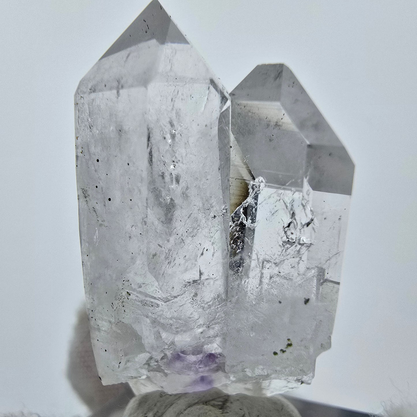 Entdecken Sie die Schönheit und Einzigartigkeit dieser klaren Phantom Amethyst Kristallspitze. Mit einer beeindruckenden lila-weiß-transparenten Kristallspitze, die von faszinierenden lila-braunen Phantomen durchzogen ist, stellt dieser Kristall ein wahres Meisterwerk der Natur dar. Die Phantome im Inneren, auch bekannt als Phantomquarz, verleihen dem Kristall eine mystische Ausstrahlung und machen ihn zu einem perfekten Sammlerstück oder Geschenk.