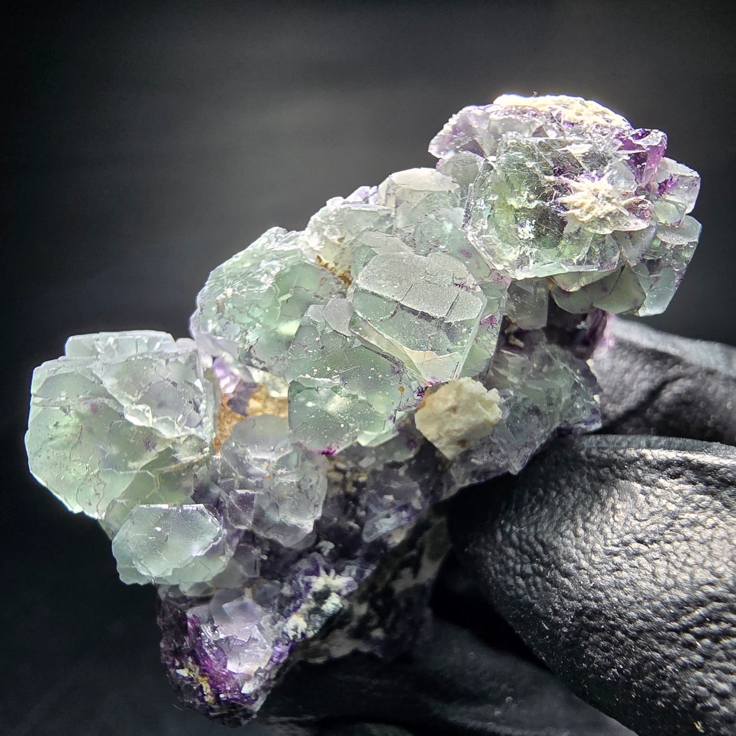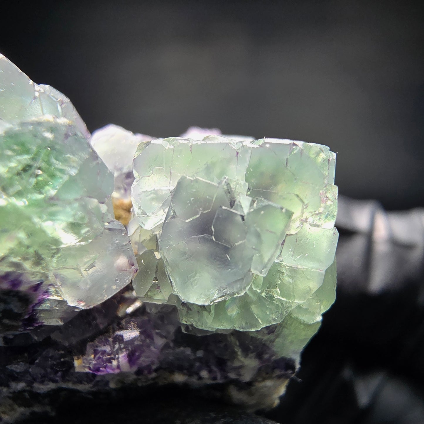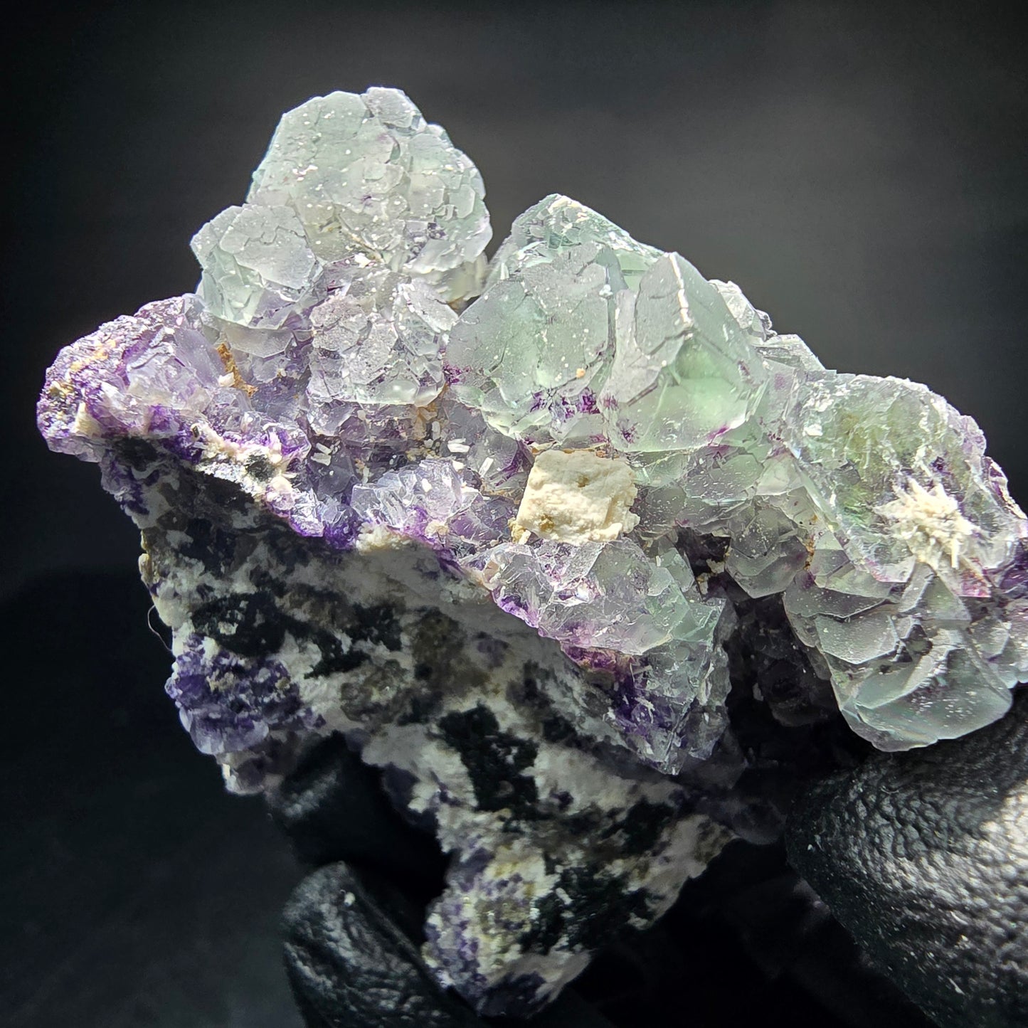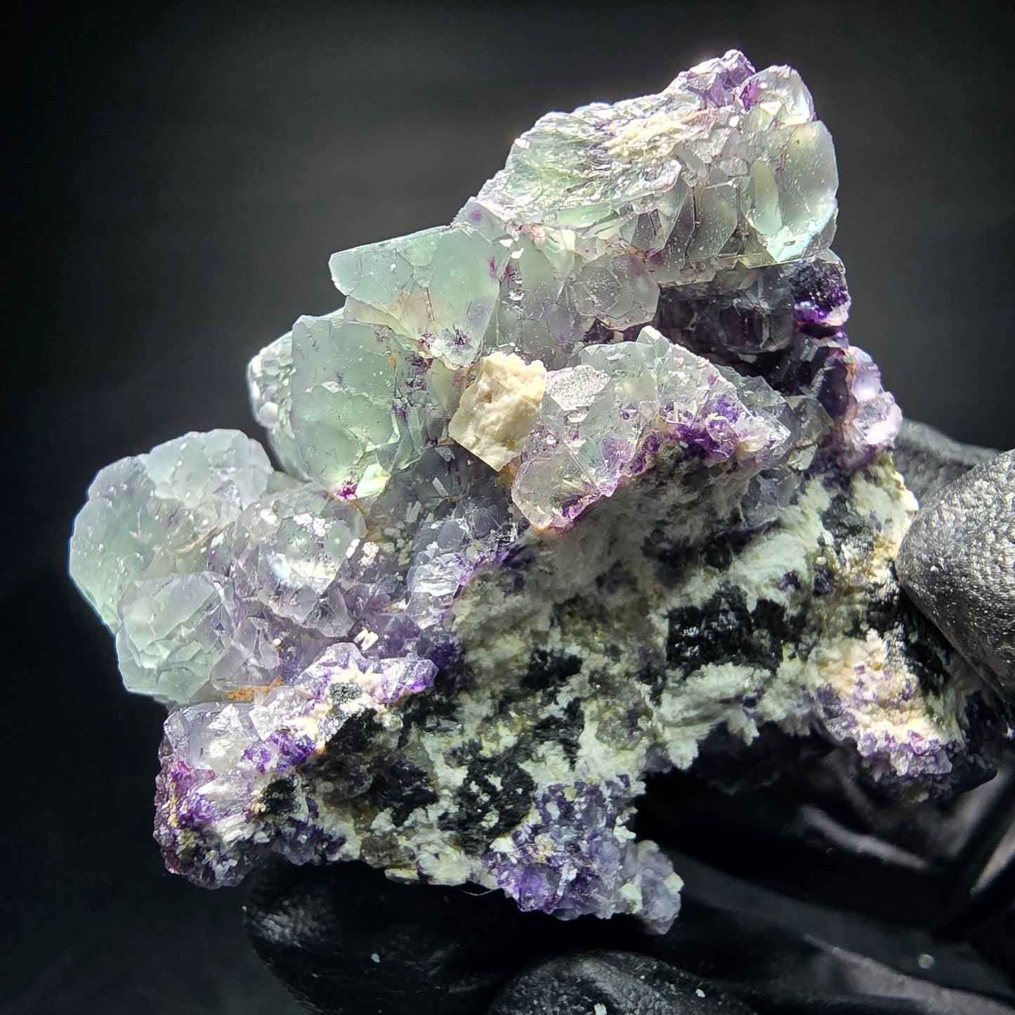 - Material: Klare zonare Fluorit Würfel auf Schörl Turmalin Matrix