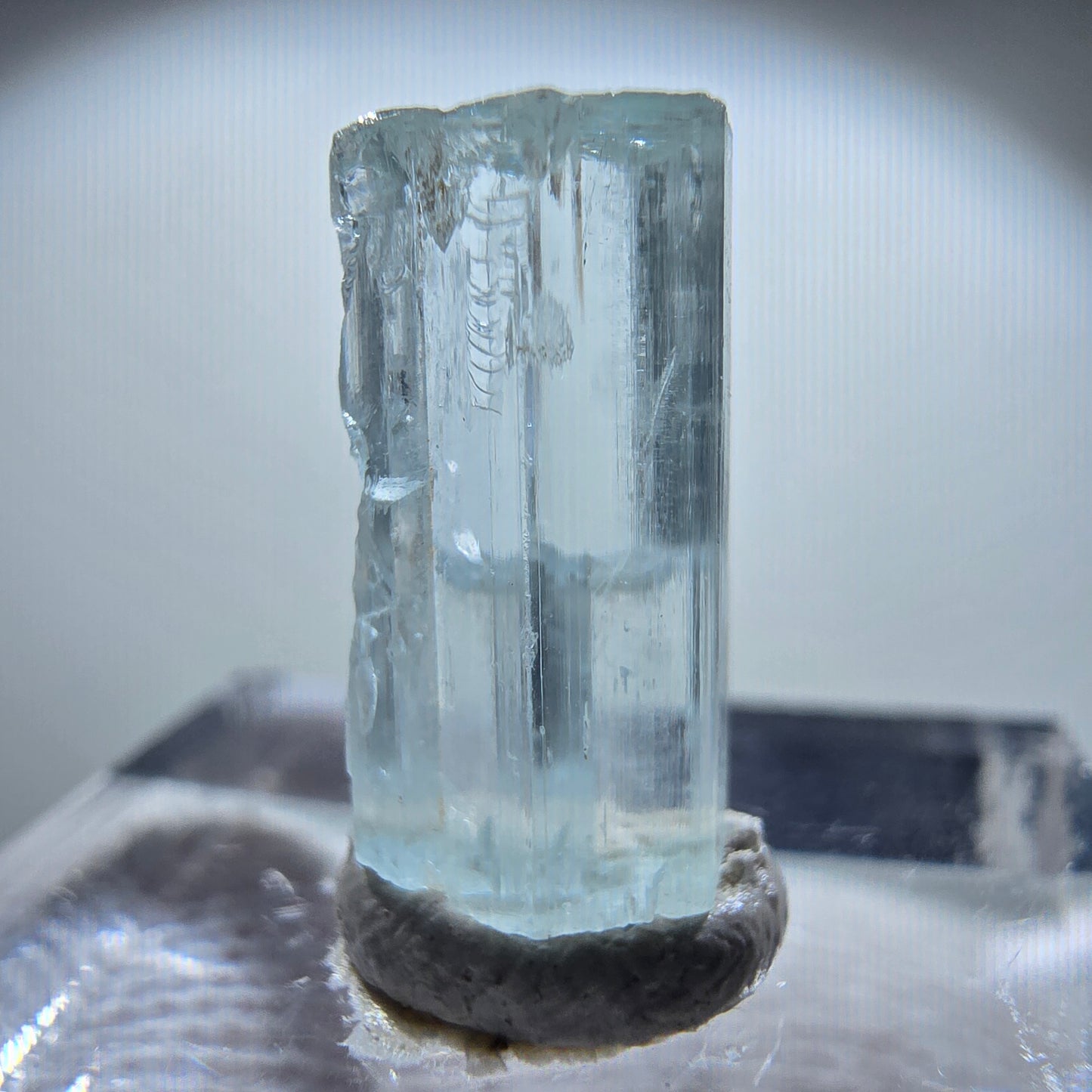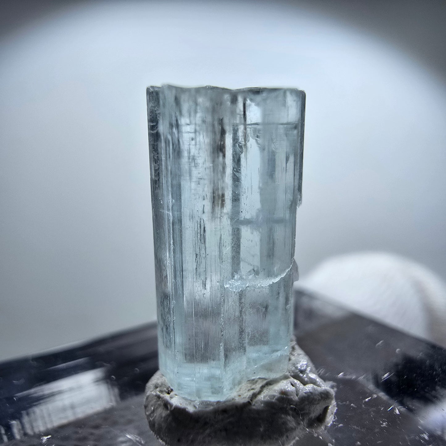 Fundort: Nagar, Pakistan. Dieser Kristall wurde in einem der bekanntesten Gebiet für hochwertige Aquamarine gefunden und bietet die typische Schönheit und Klarheit, die mit dieser wertvollen Mineralgruppe assoziiert wird.
