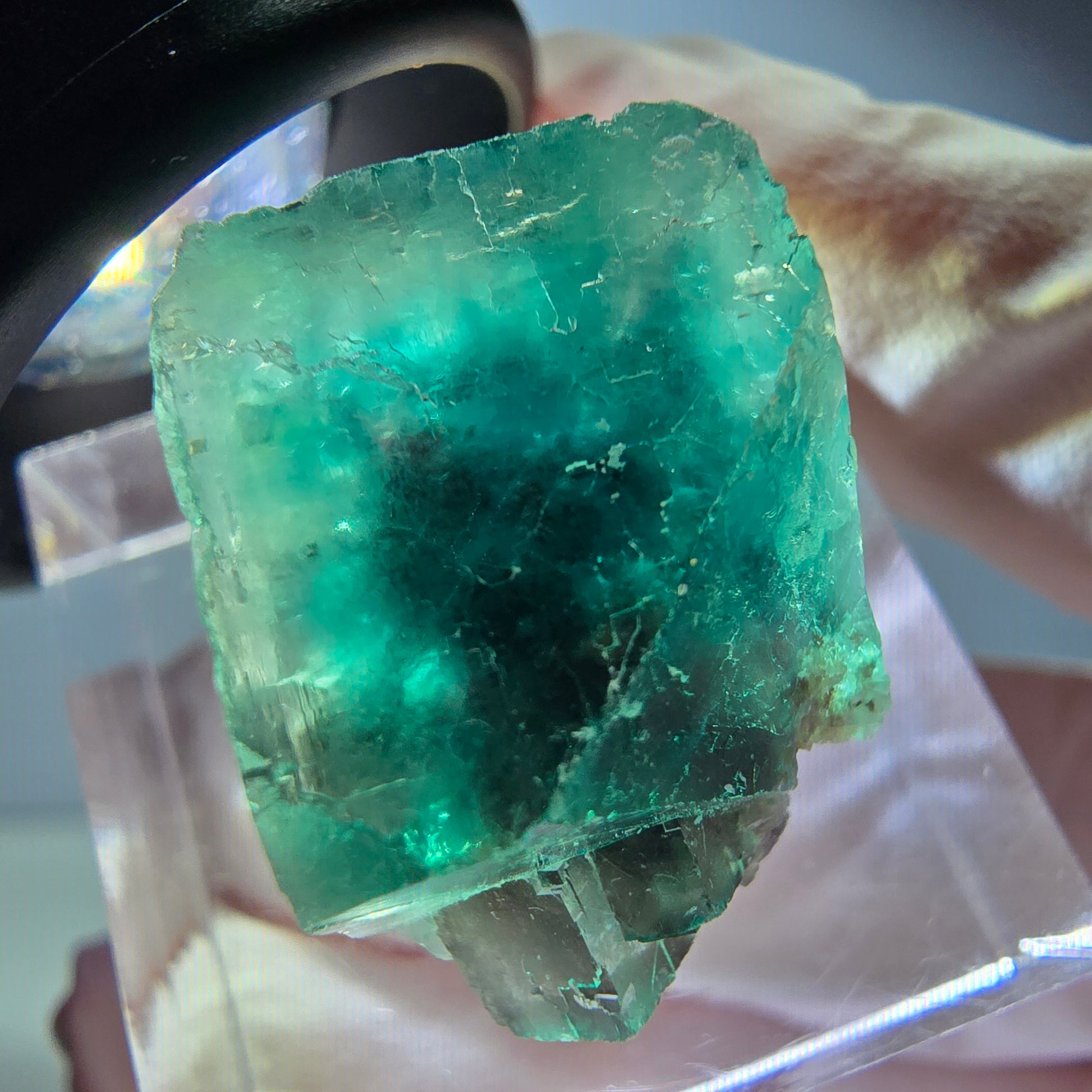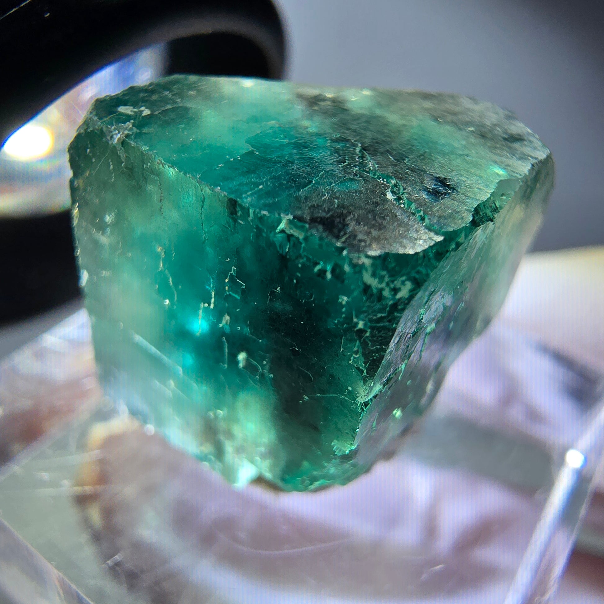 Entdecken Sie die faszinierende Schönheit unseres klaren grünen transparenten Phantom Fluorit Würfels. Dieser exquisite Kristall besticht durch seine kubische Kristallform und die sorgfältig bearbeitete parkettierte Oberfläche. Der Würfel enthält atemberaubende Phantome, die im Inneren lebendig wirken und das mystische Flair dieses Chakras verstärken.